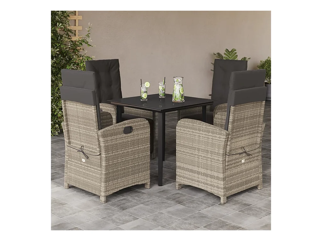Ensemble à manger de jardin et coussins 5 pcs gris clair rotin