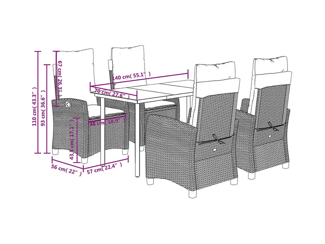 Ensemble à manger de jardin et coussins 5 pcs gris clair rotin
