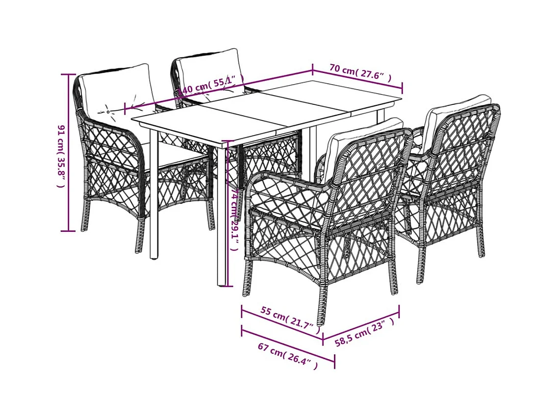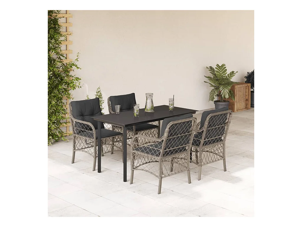 Ensemble à manger de jardin et coussins 5 pcs gris clair rotin