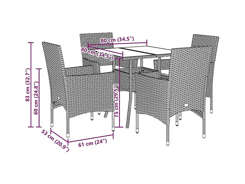 Ensemble à manger de jardin et coussins 5 pcs noir rotin acacia