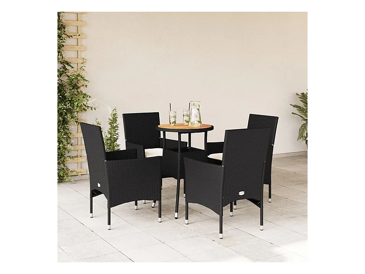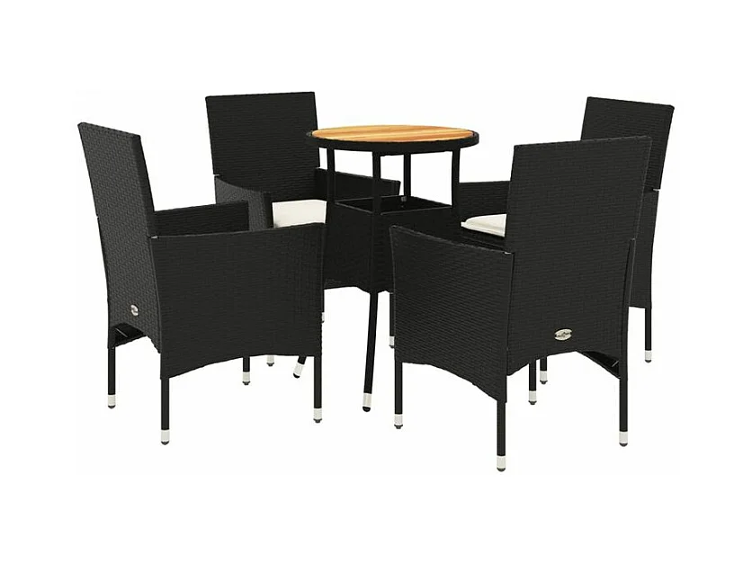 Ensemble à manger de jardin et coussins 5 pcs noir rotin acacia