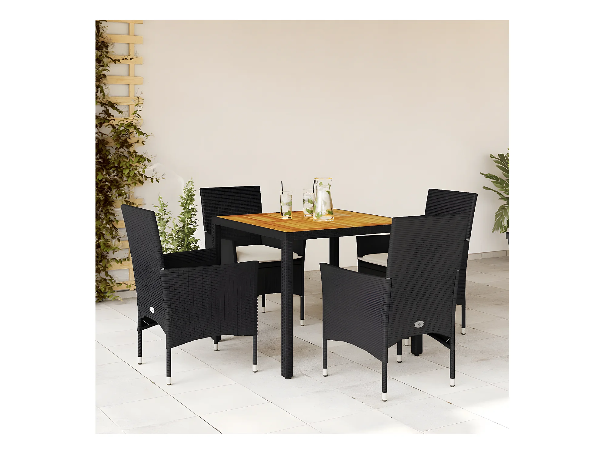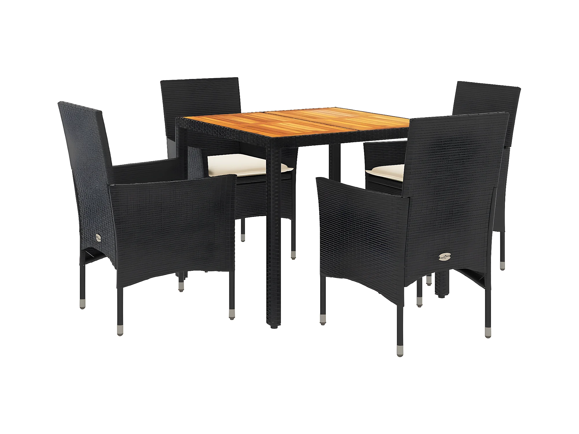 Ensemble à manger de jardin et coussins 5 pcs noir rotin acacia