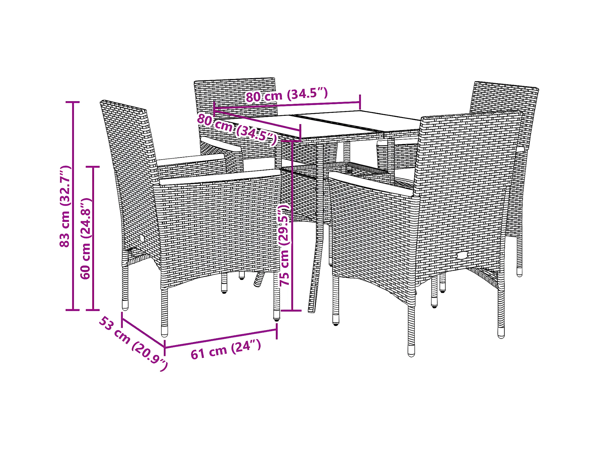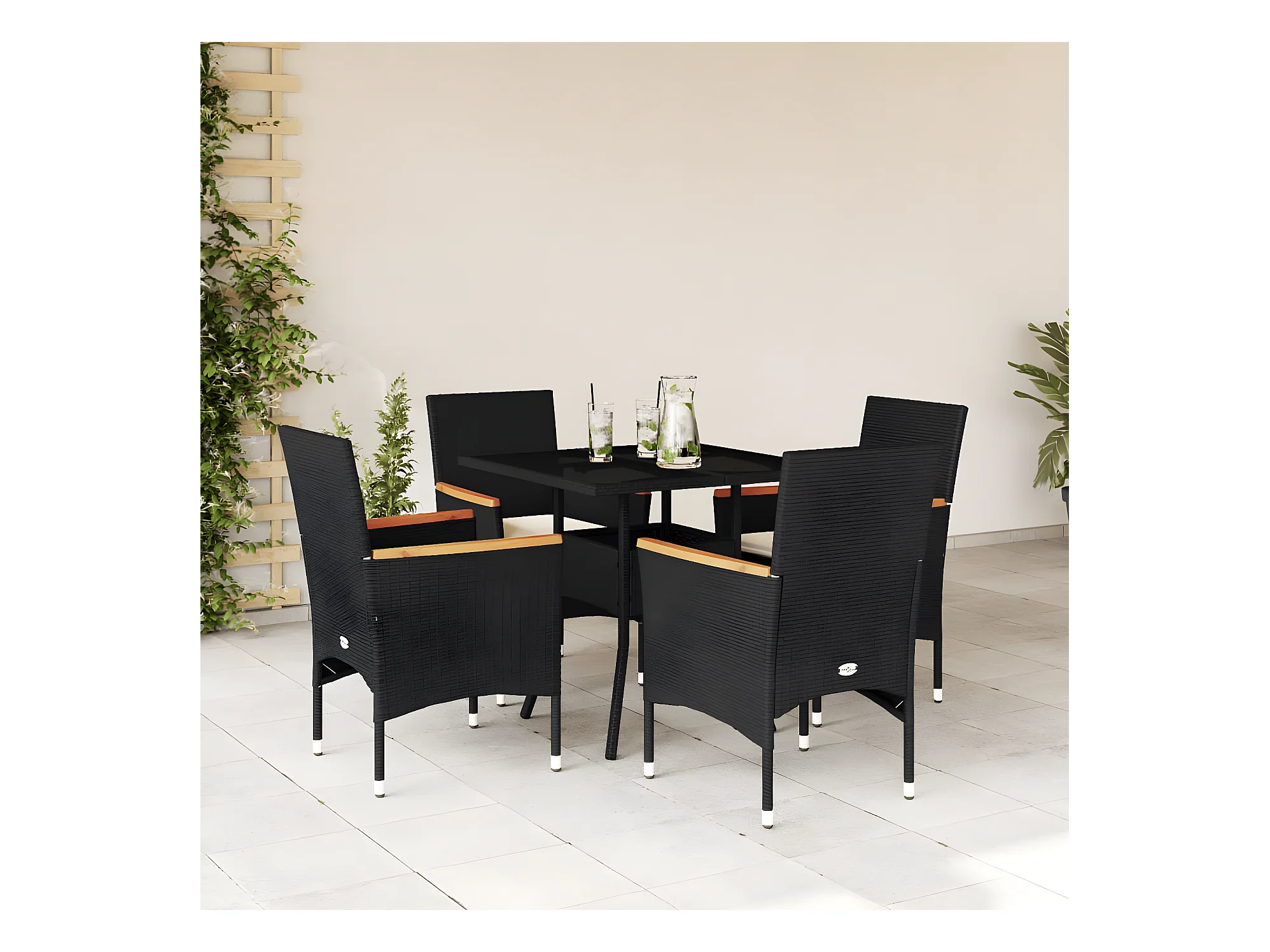 Ensemble à manger de jardin et coussins 5 pcs noir rotin verre