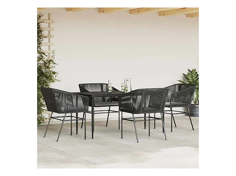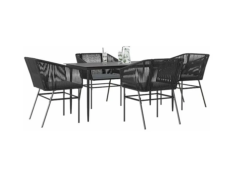 Ensemble à manger de jardin et coussins 5 pcs noir rotin verre