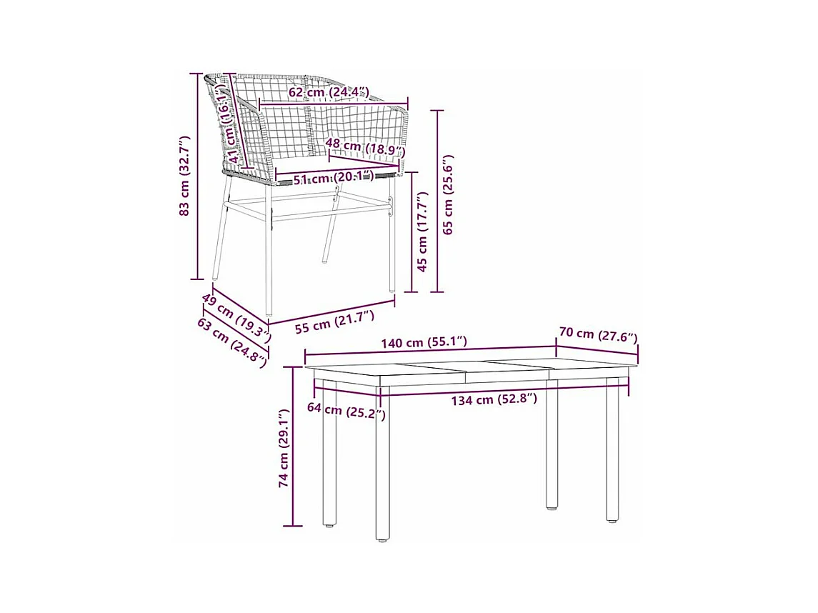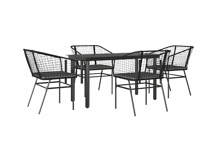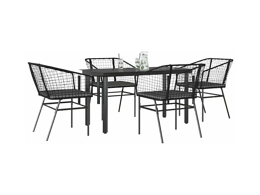 Ensemble à manger de jardin et coussins 5 pcs noir rotin verre