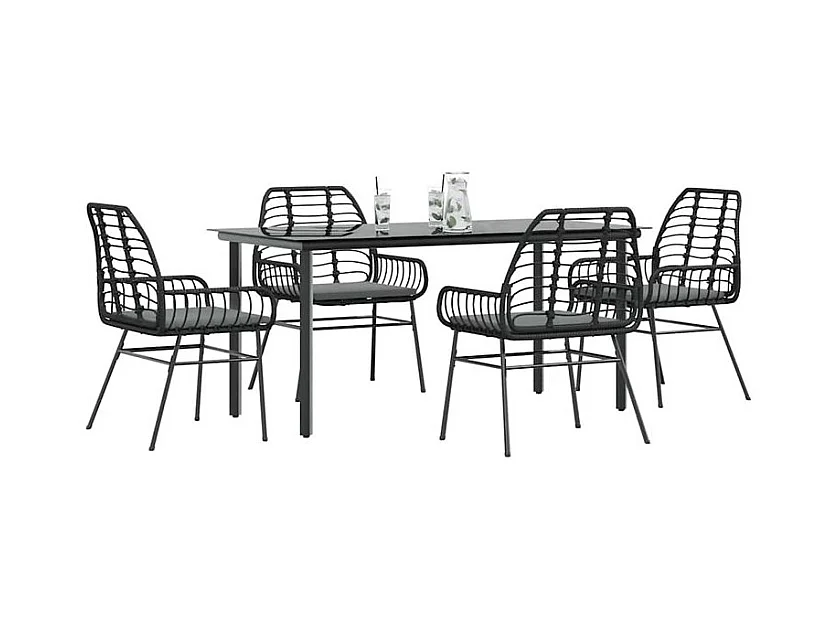 Ensemble à manger de jardin et coussins 5 pcs noir rotin verre