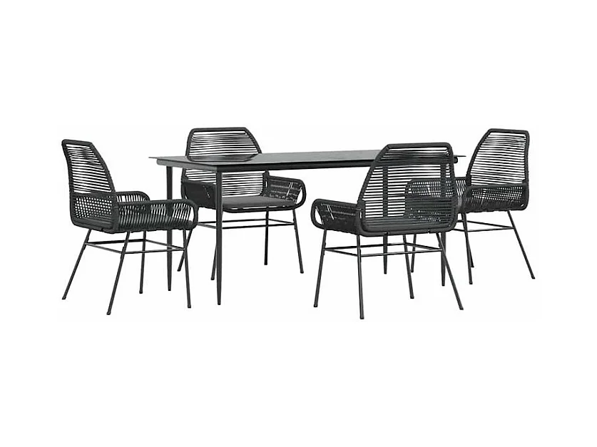 Ensemble à manger de jardin et coussins 5 pcs noir rotin verre