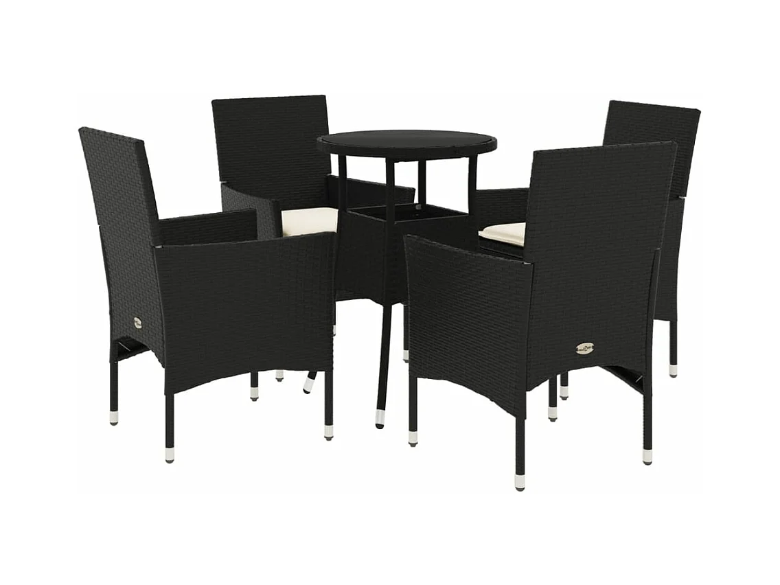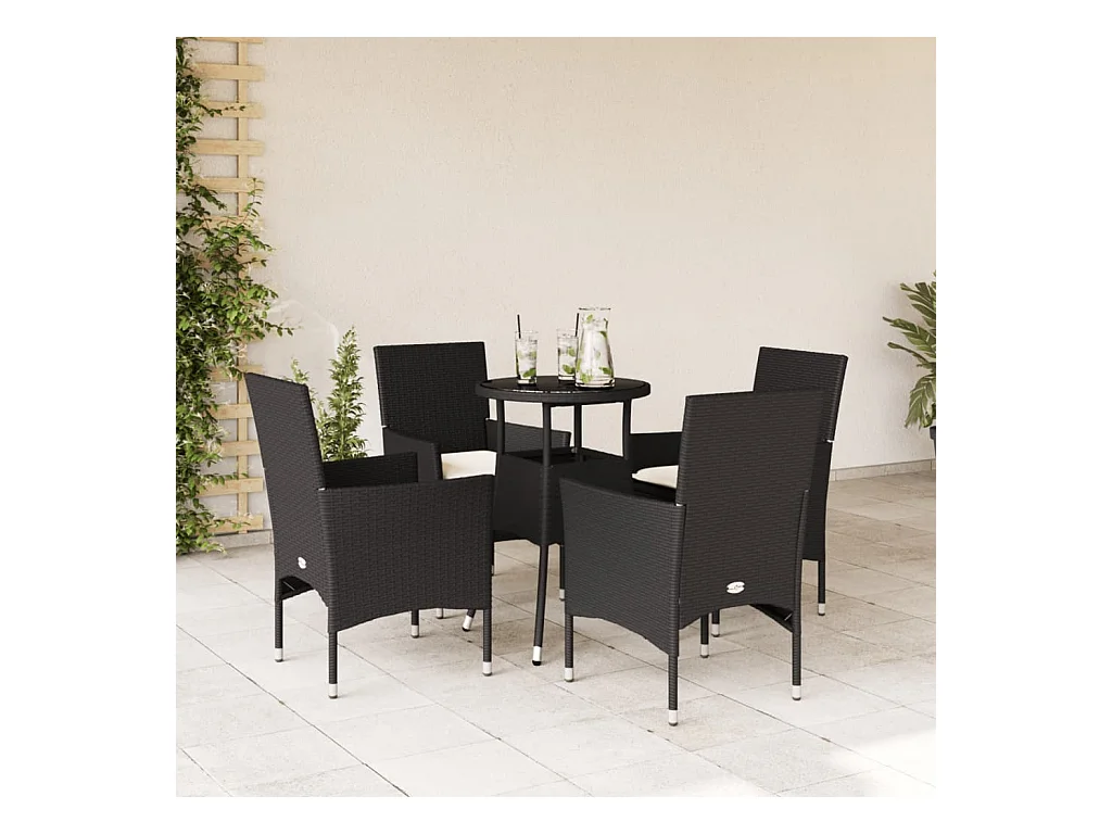 Ensemble à manger de jardin et coussins 5 pièces noir rotin verre