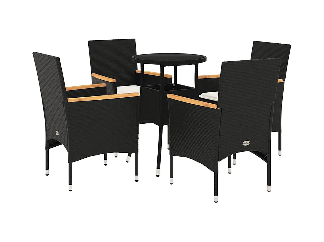 Ensemble à manger de jardin et coussins 5 pièces noir rotin verre