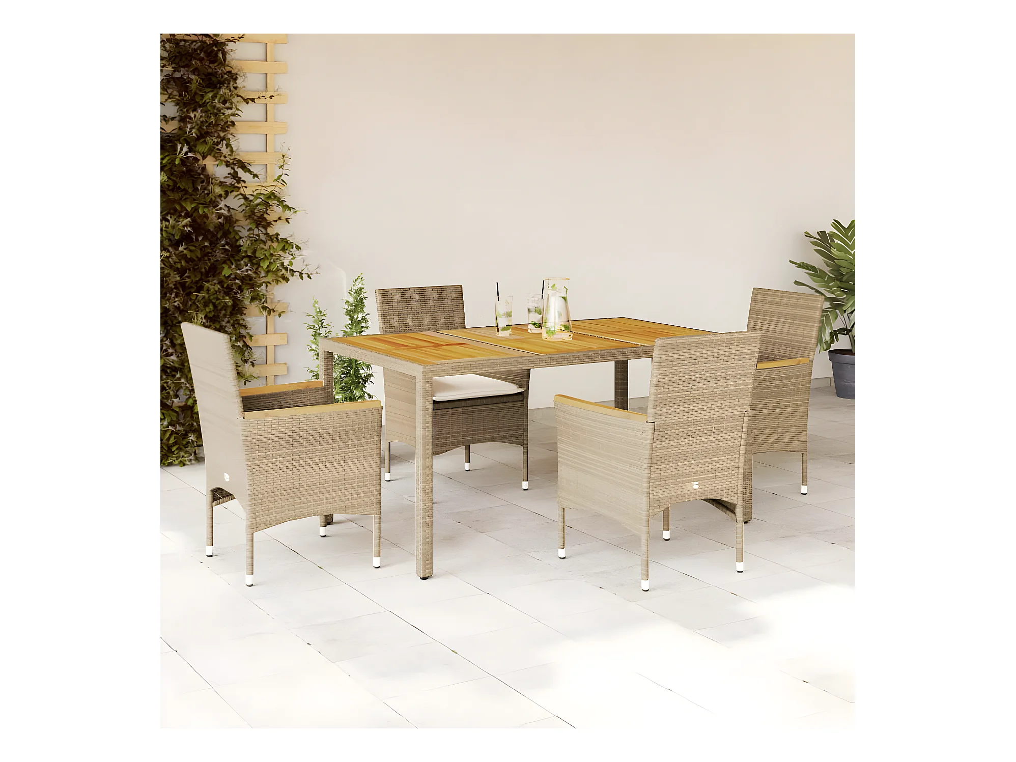 Ensemble à manger de jardin et coussins 5pcs beige rotin acacia