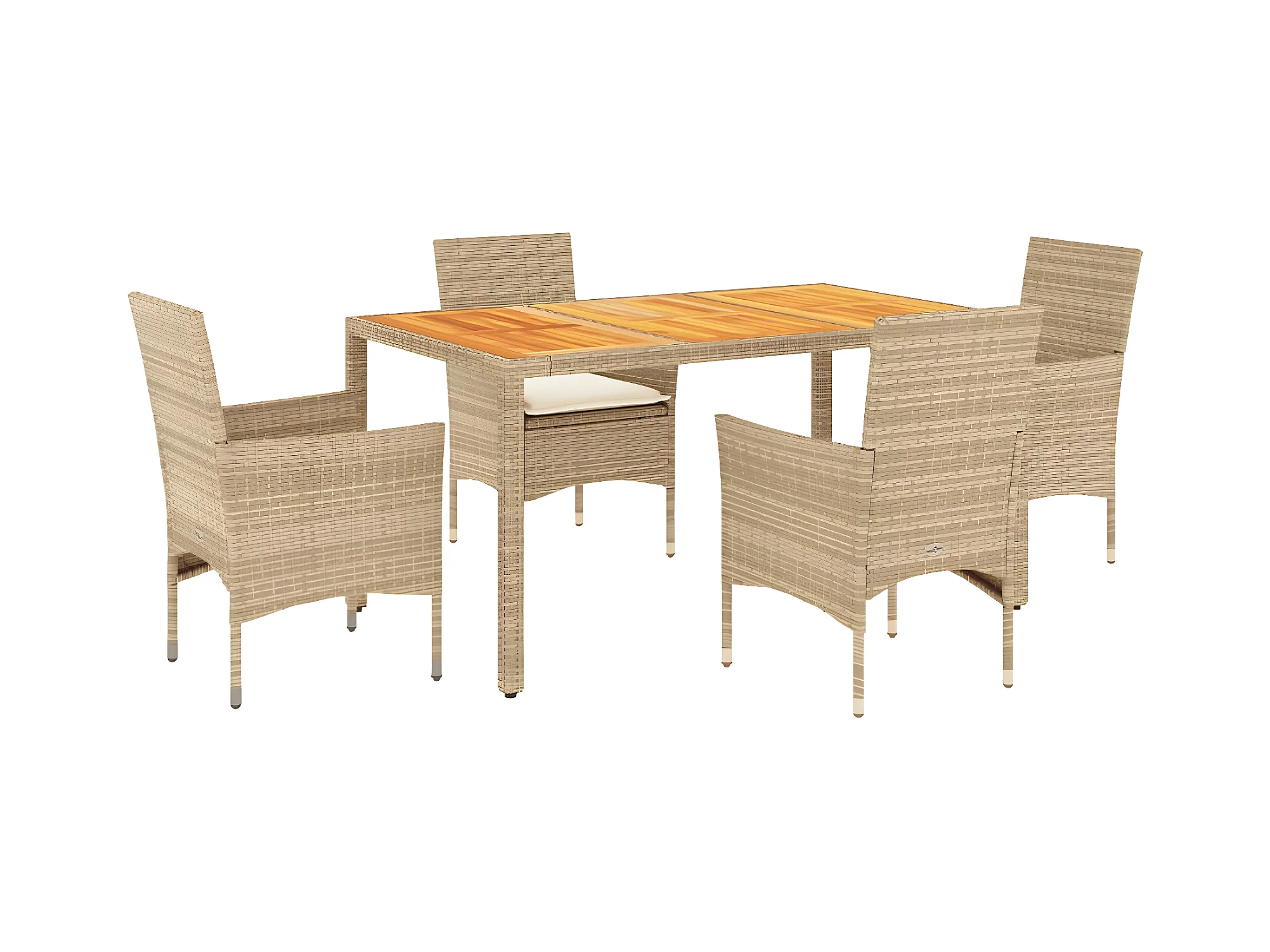 Ensemble à manger de jardin et coussins 5pcs beige rotin acacia