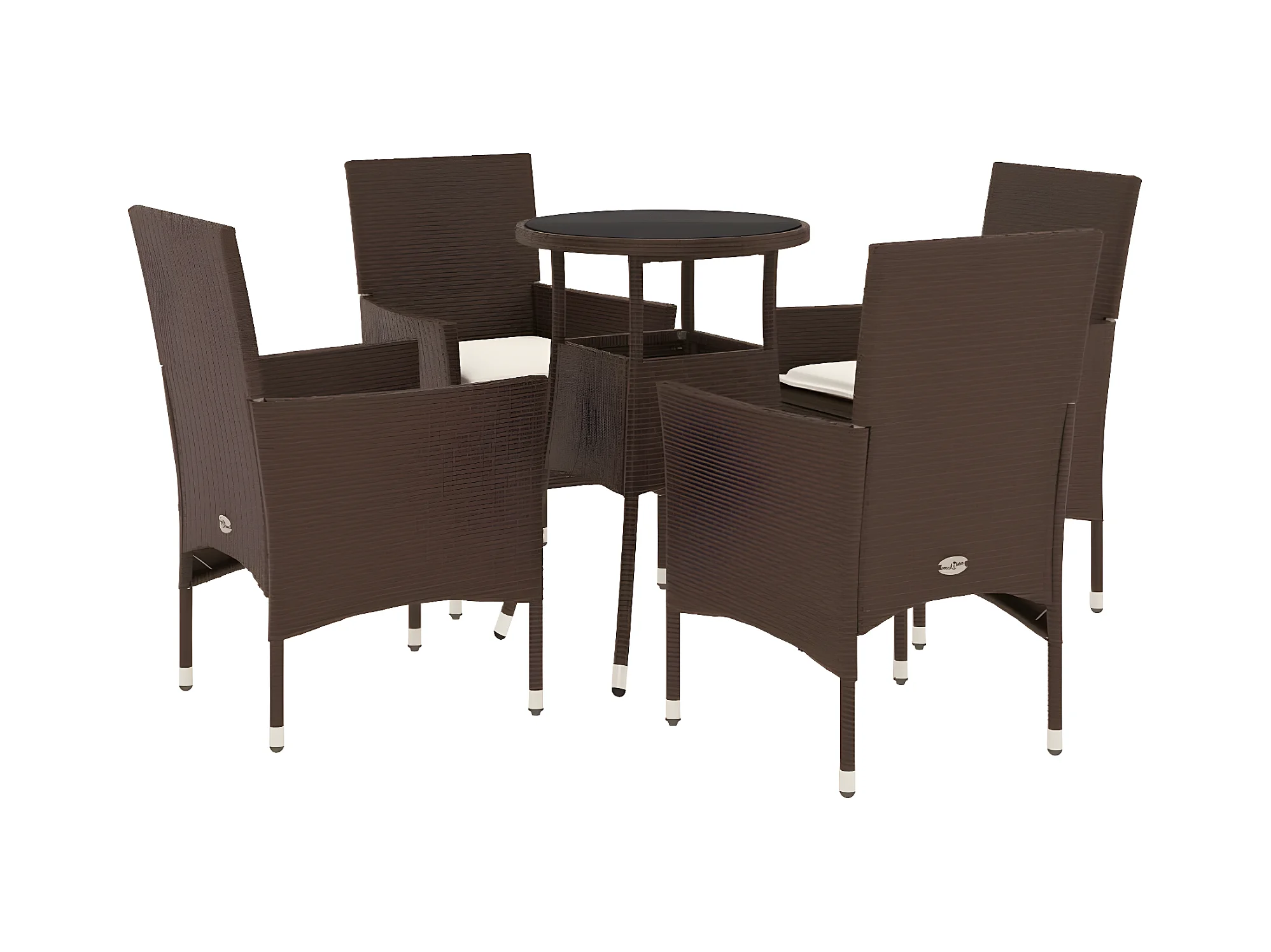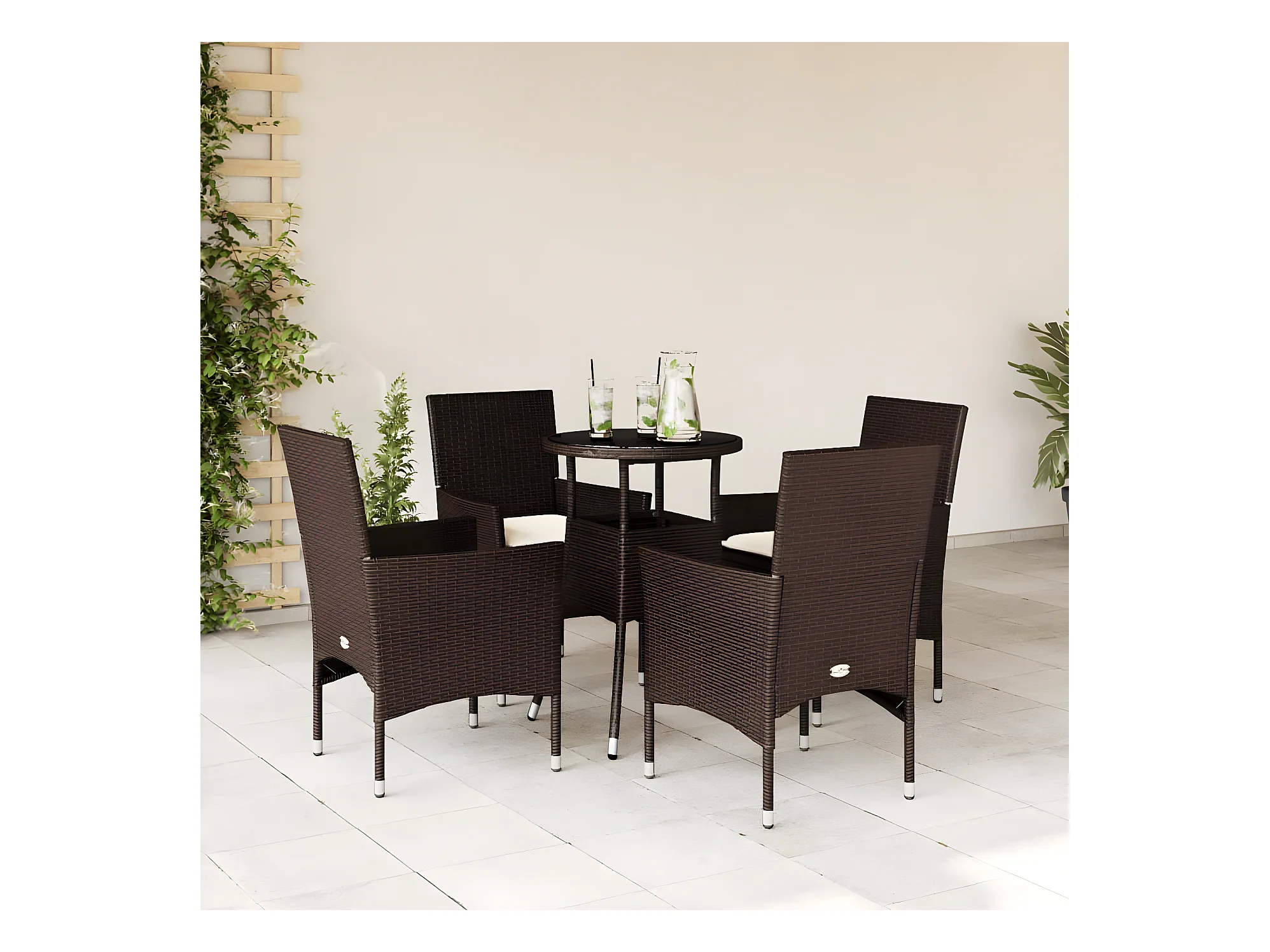 Ensemble à manger de jardin et coussins 5pcs marron rotin verre