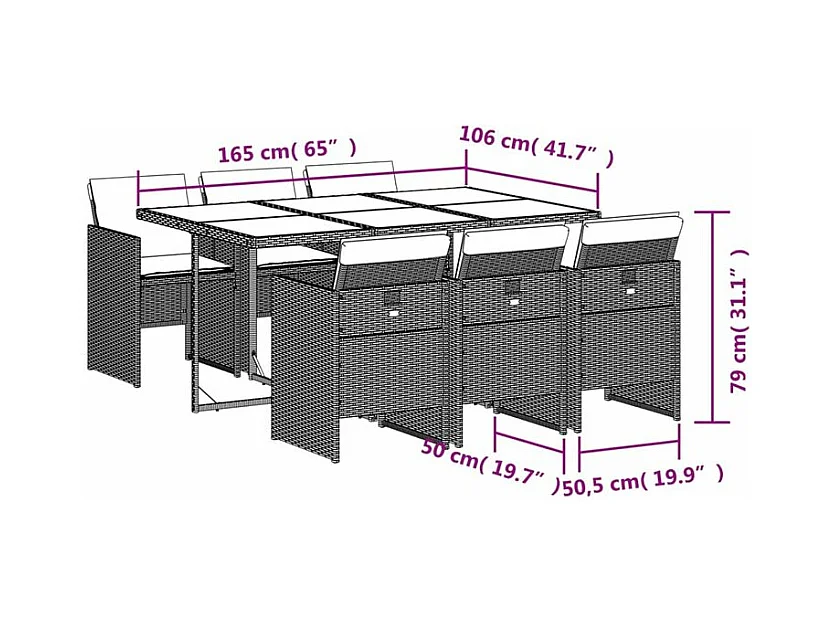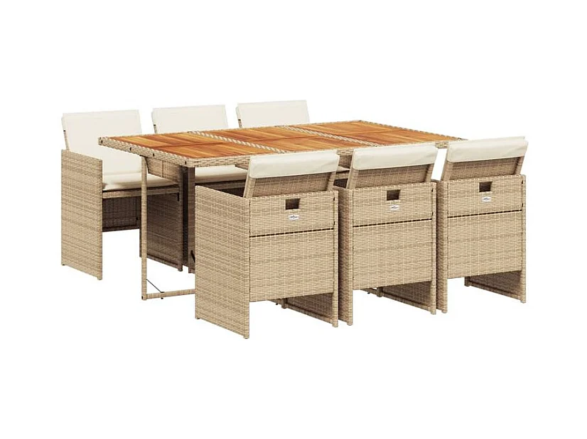 Ensemble à manger de jardin et coussins 7 pcs beige poly rotin