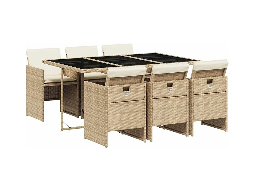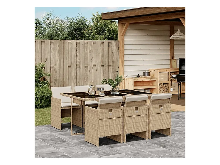Ensemble à manger de jardin et coussins 7 pcs beige poly rotin