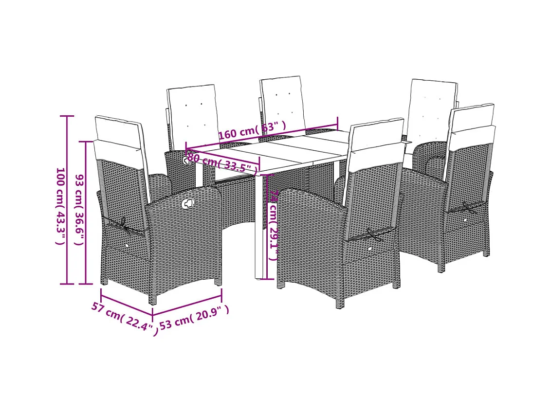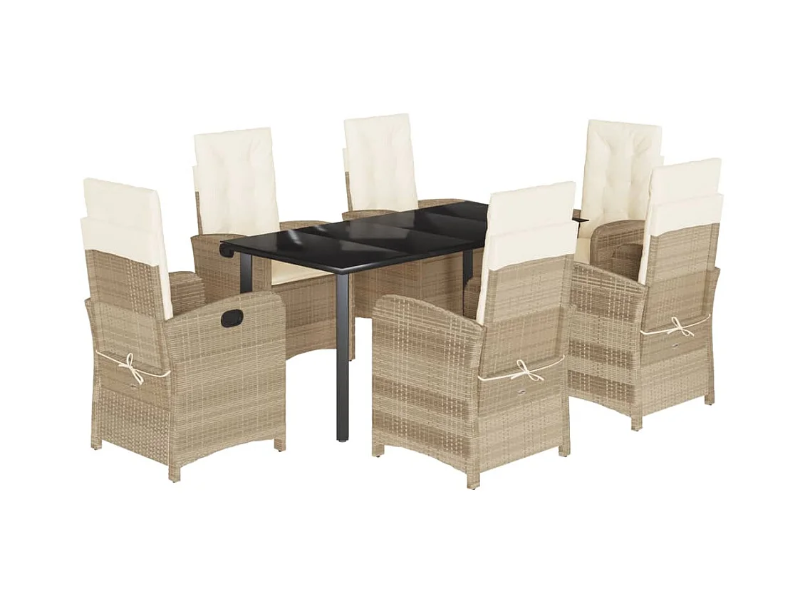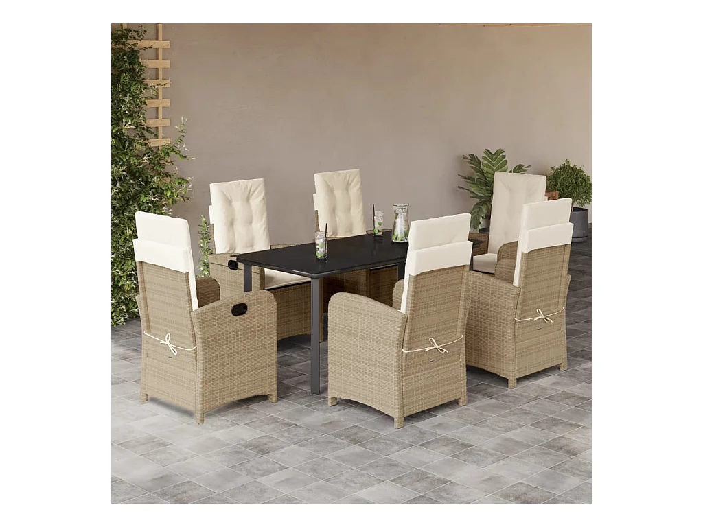 Ensemble à manger de jardin et coussins 7 pcs beige poly rotin