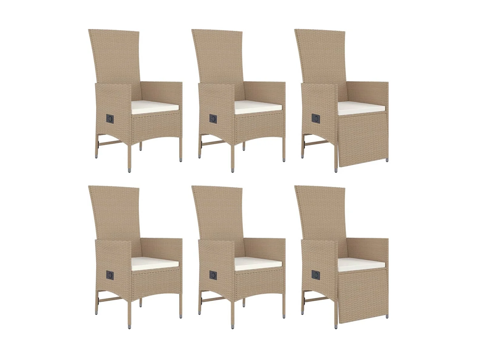 Ensemble à manger de jardin et coussins 7 pcs beige poly rotin