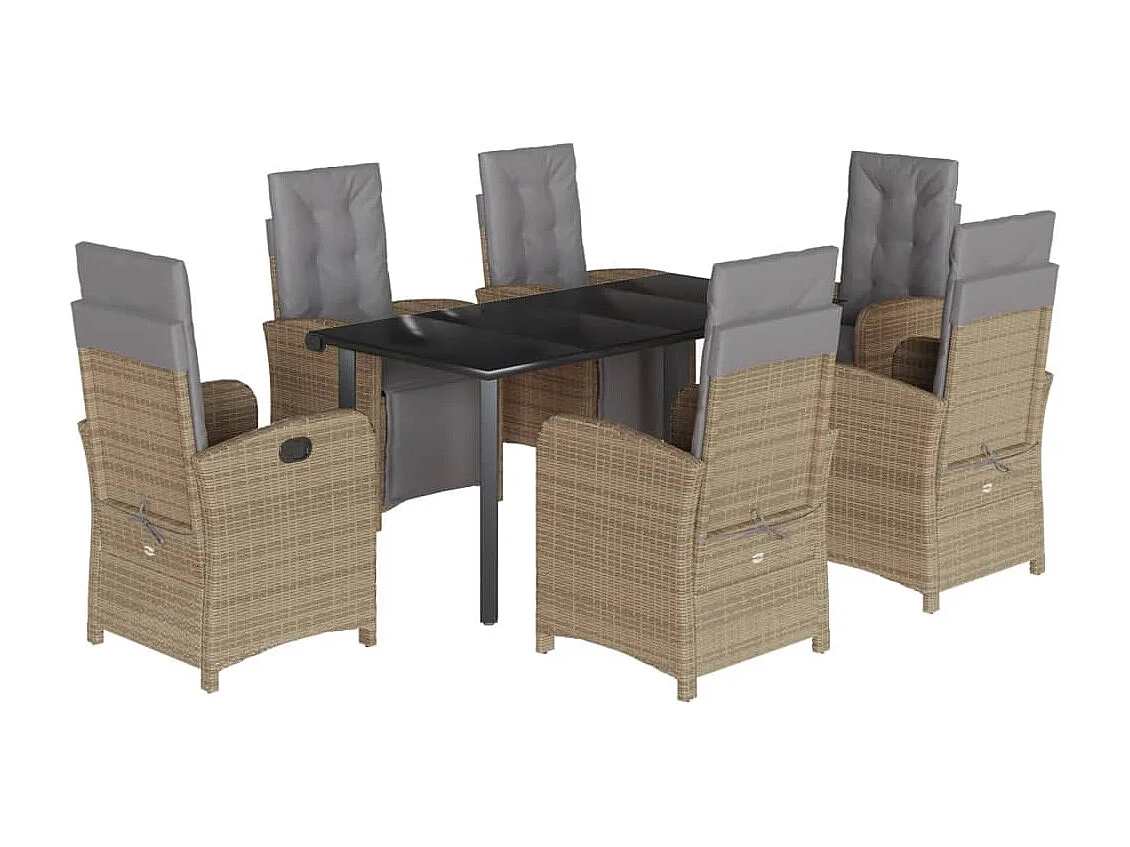 Ensemble à manger de jardin et coussins 7 pcs beige poly rotin