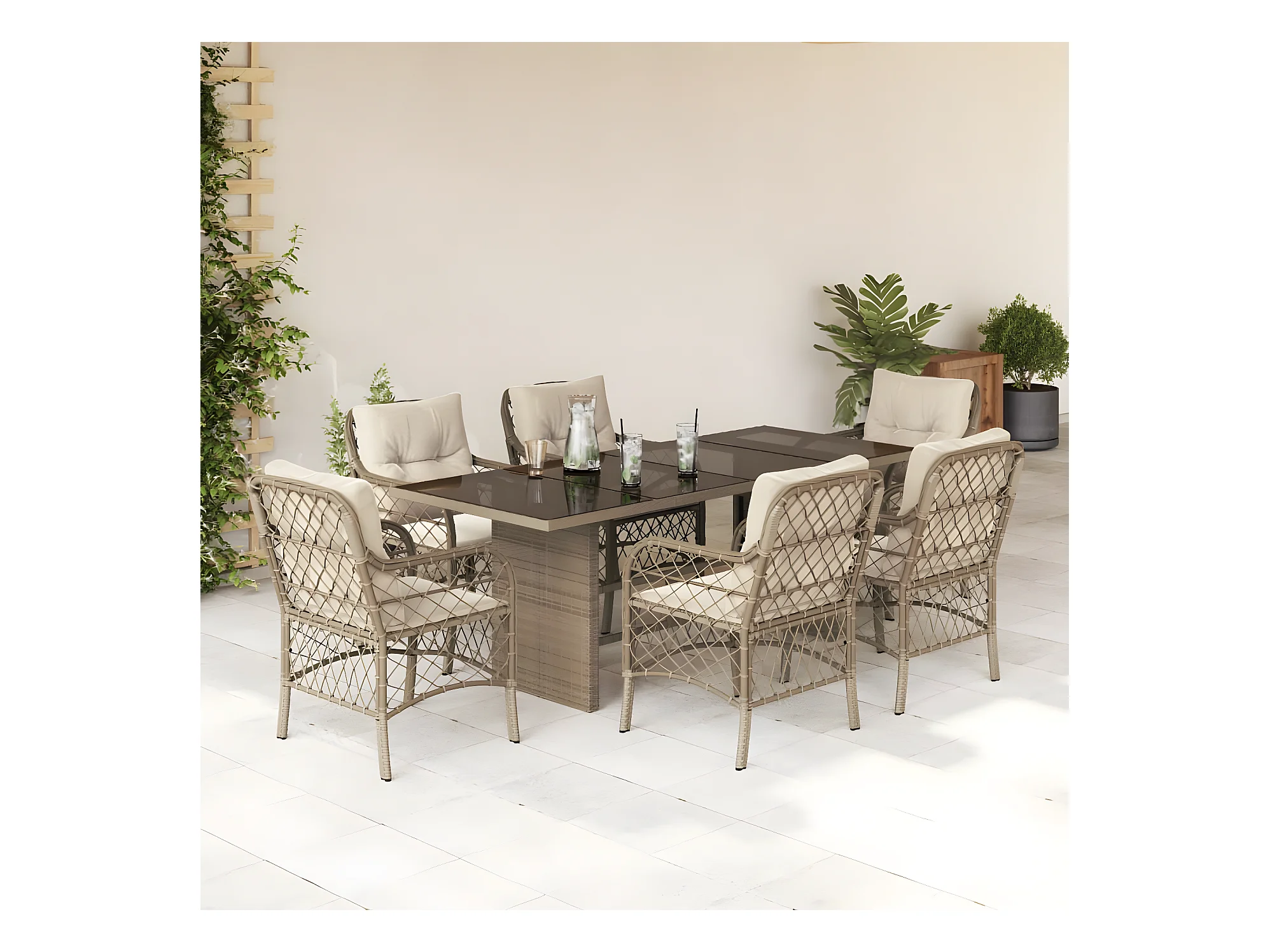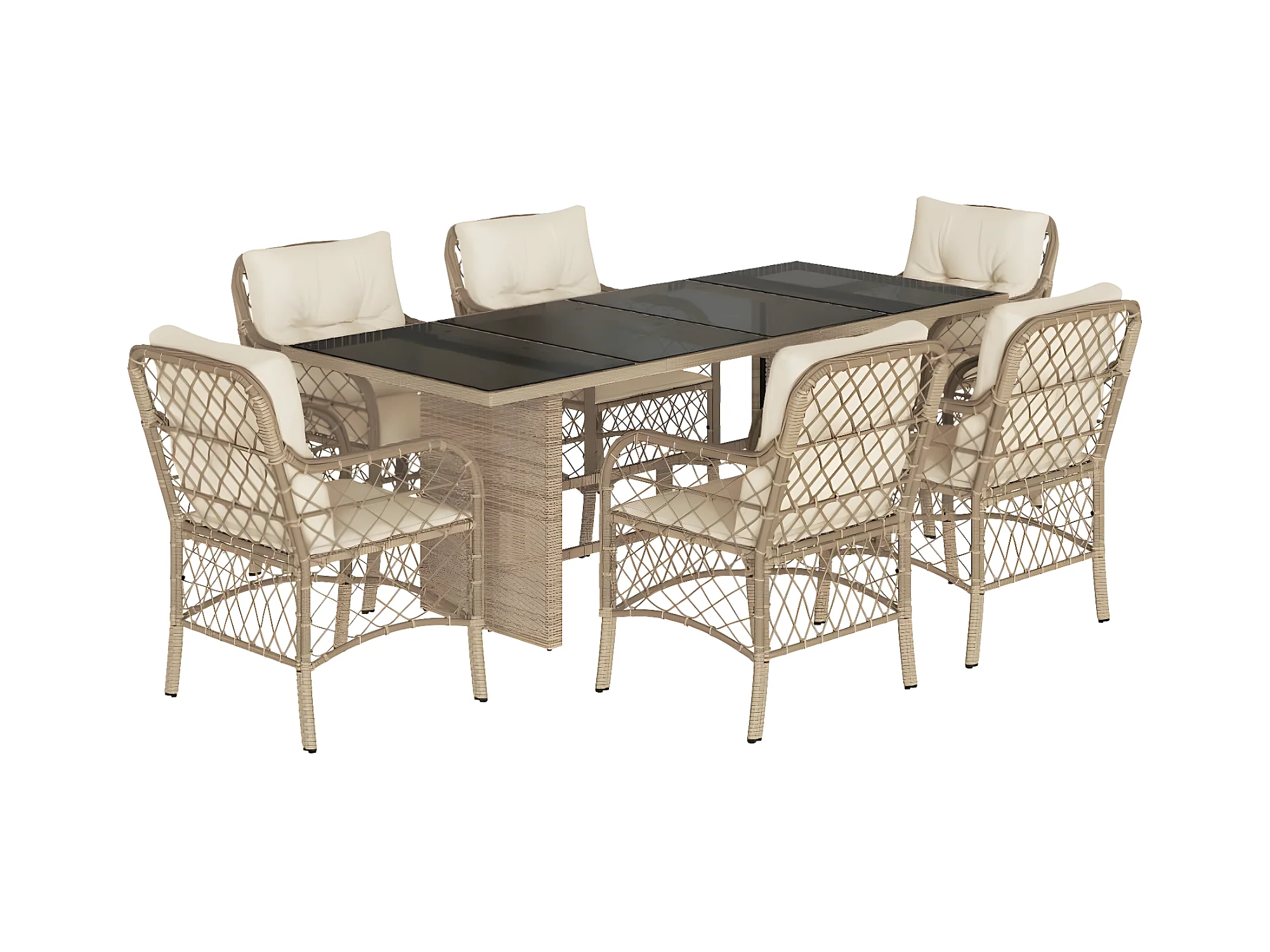 Ensemble à manger de jardin et coussins 7 pcs beige poly rotin