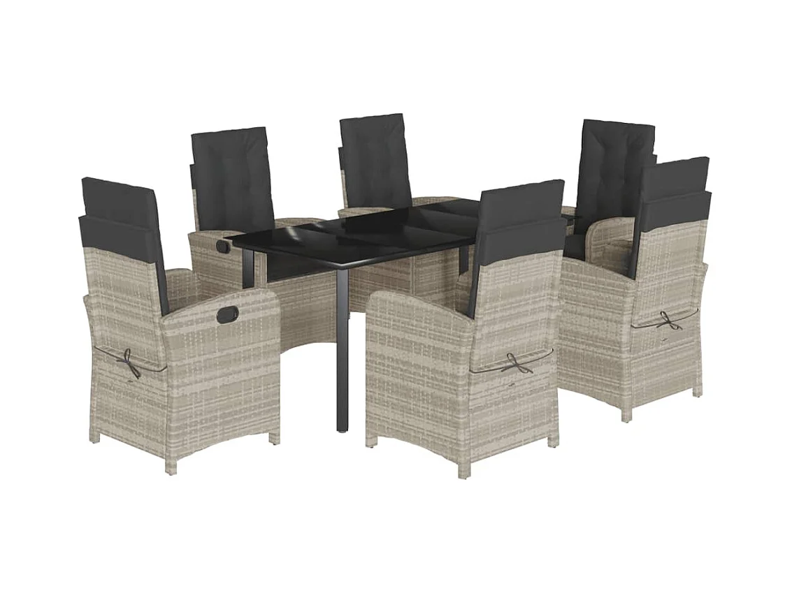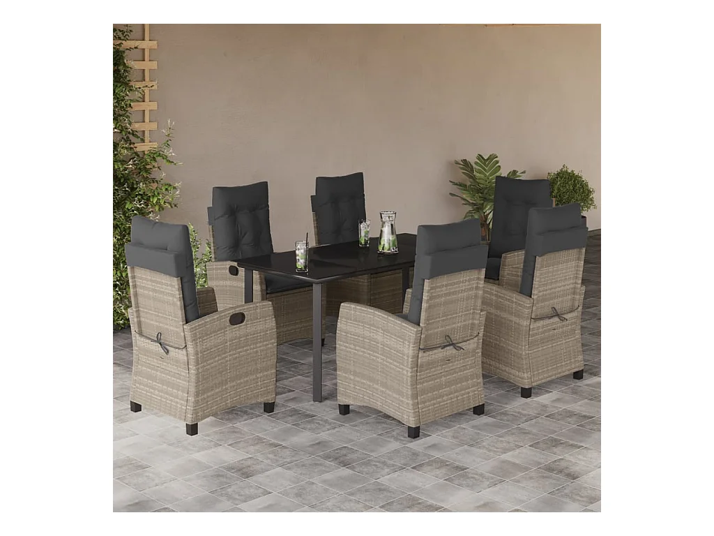 Ensemble à manger de jardin et coussins 7 pcs gris clair rotin