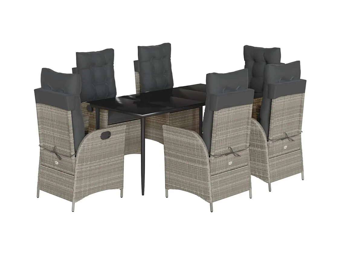 Ensemble à manger de jardin et coussins 7 pcs gris clair rotin