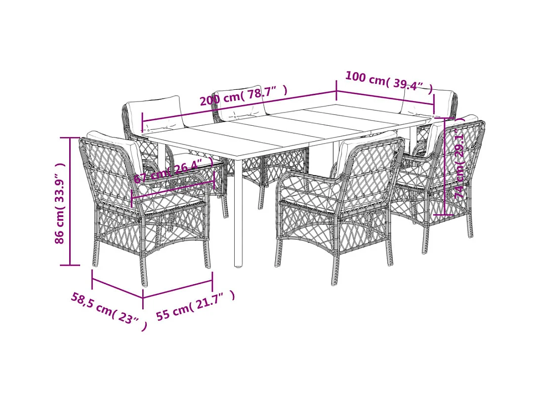 Ensemble à manger de jardin et coussins 7 pcs gris clair rotin