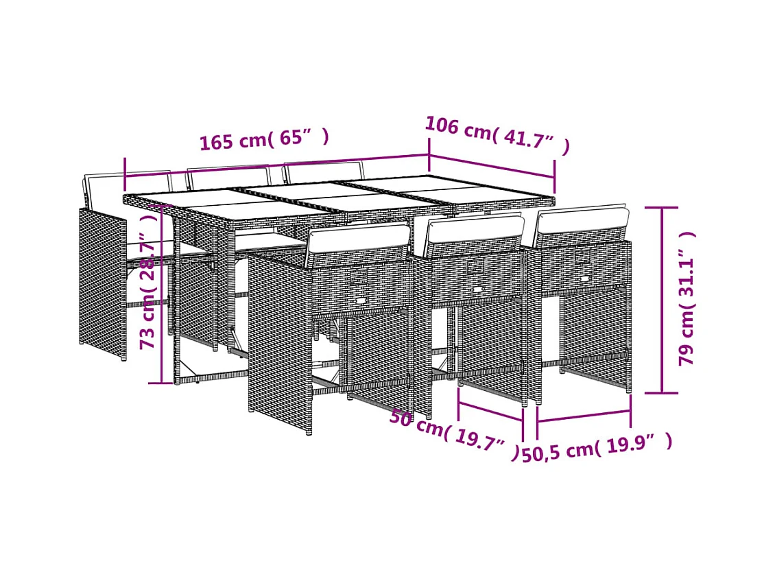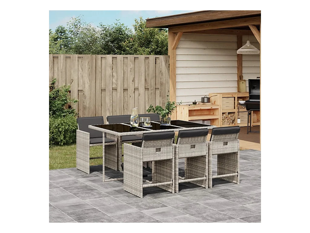 Ensemble à manger de jardin et coussins 7 pcs gris clair rotin