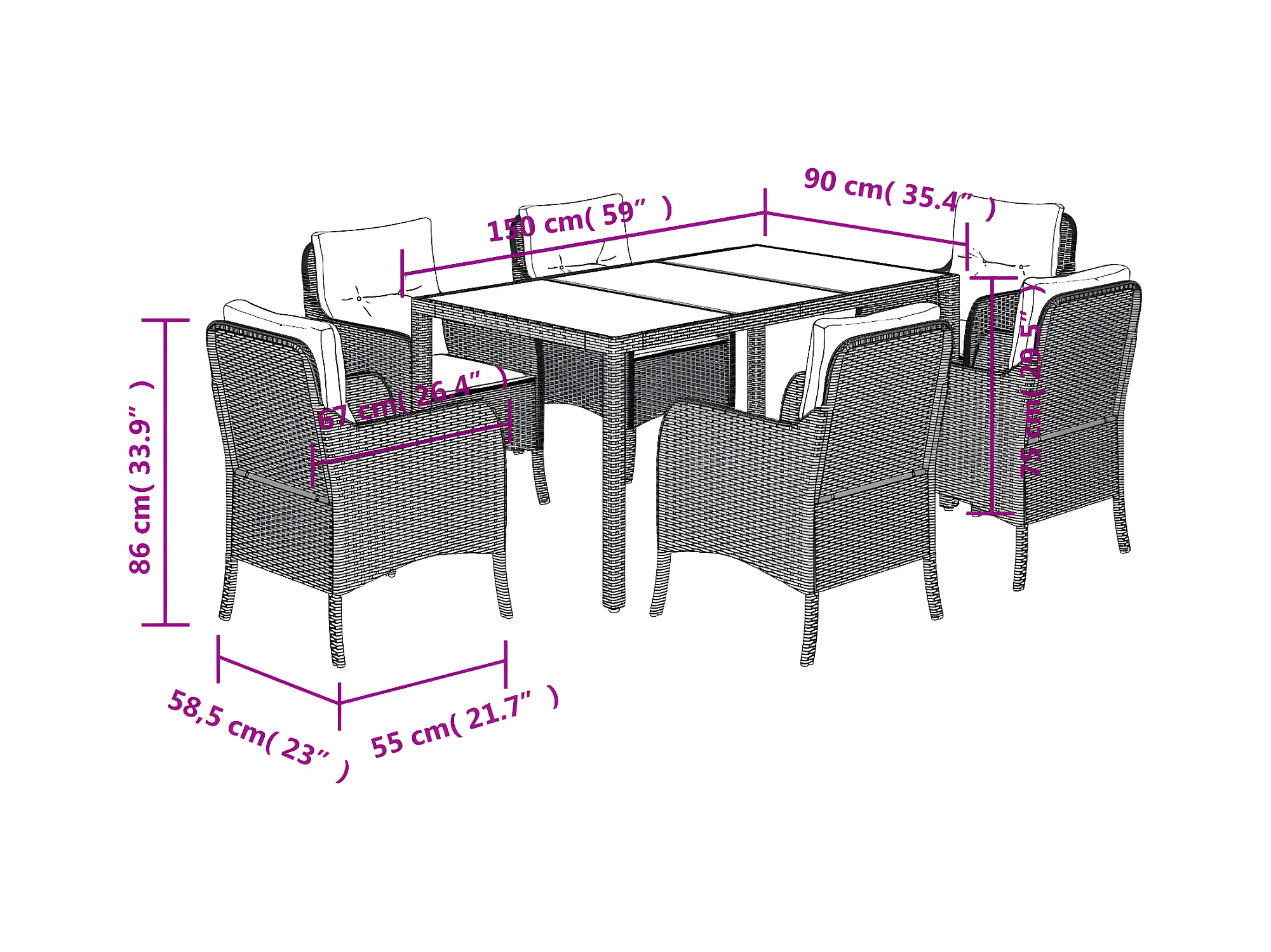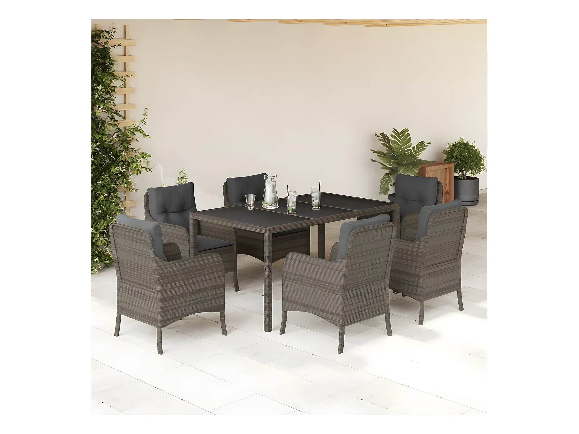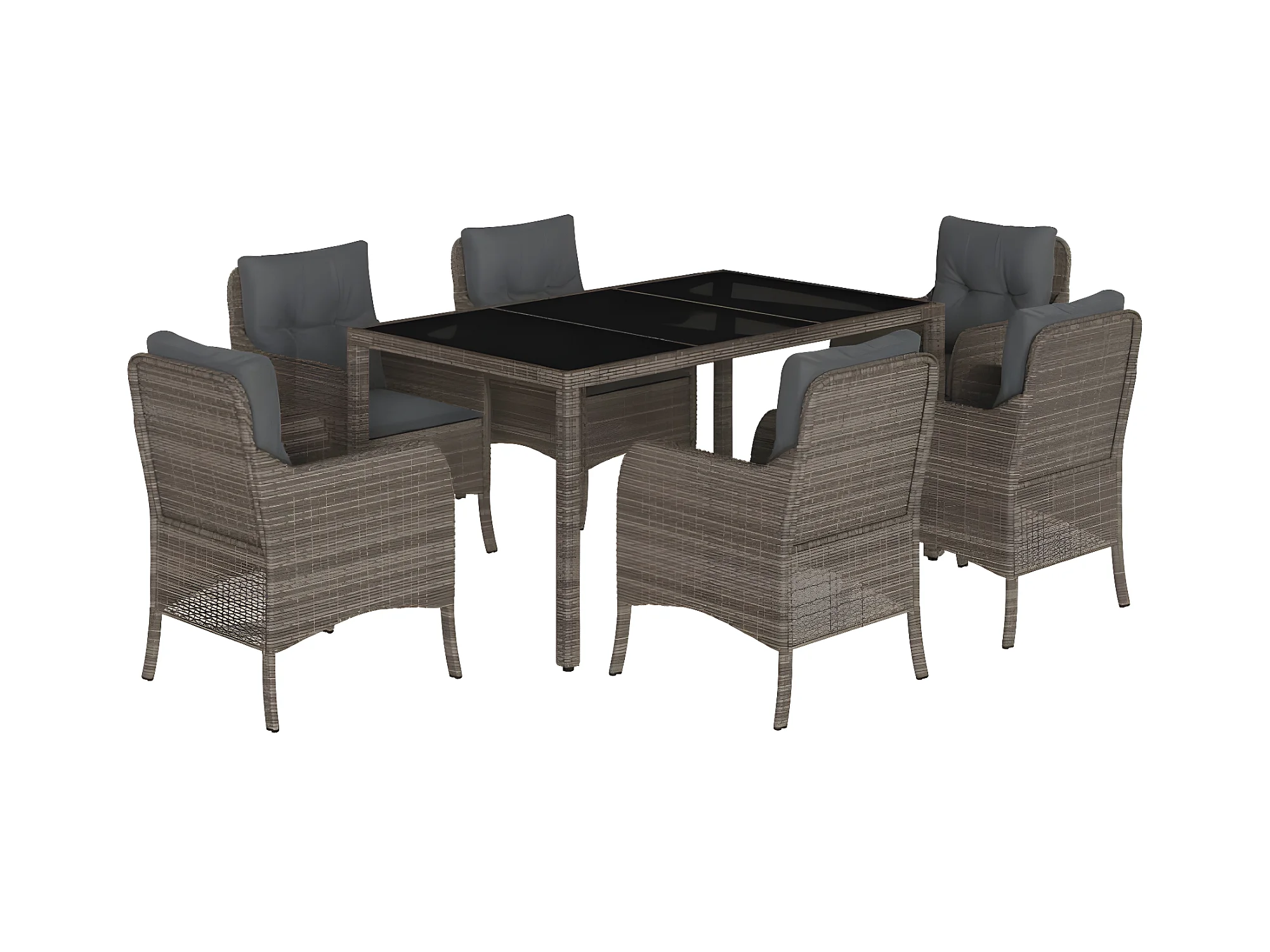 Ensemble à manger de jardin et coussins 7 pcs gris rotin