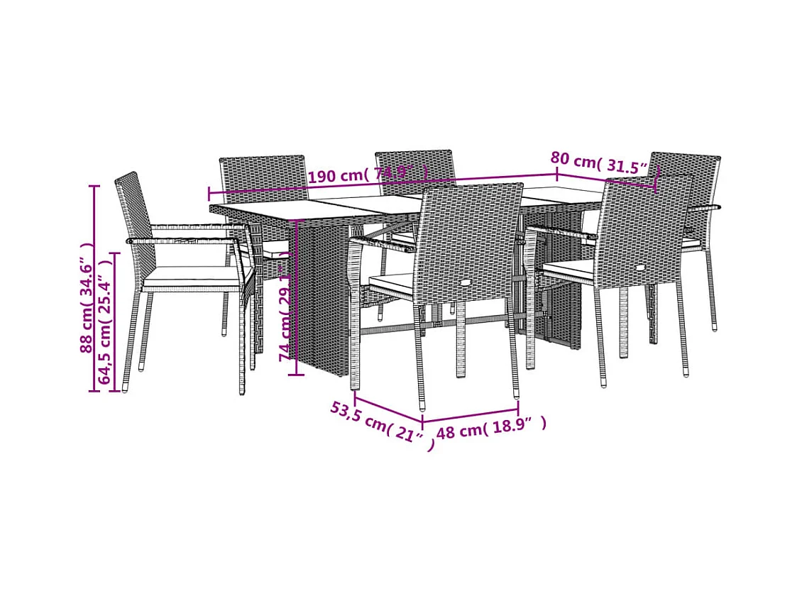 Ensemble à manger de jardin et coussins 7 pcs gris rotin
