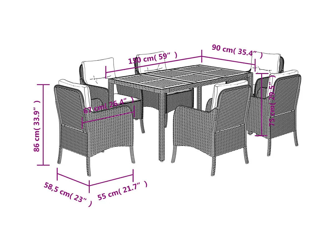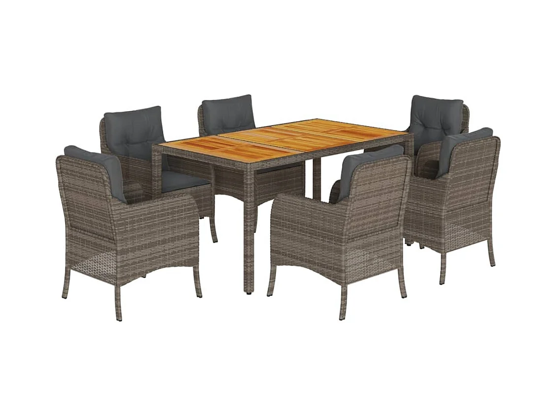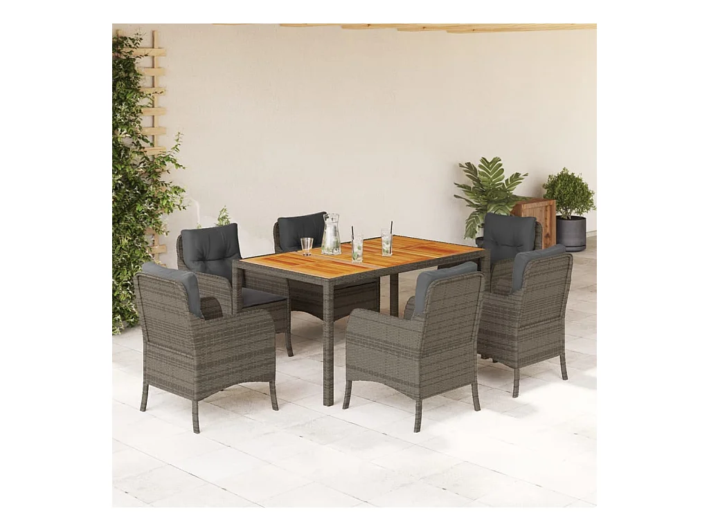 Ensemble à manger de jardin et coussins 7 pcs gris rotin
