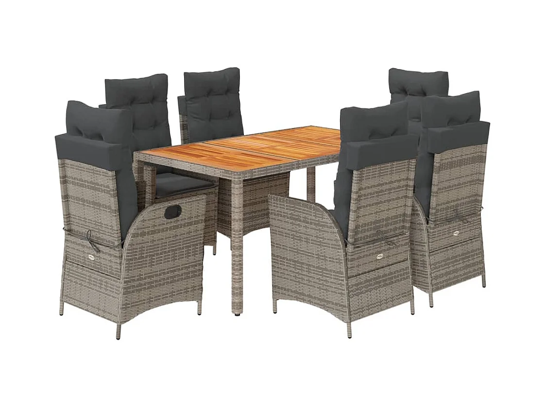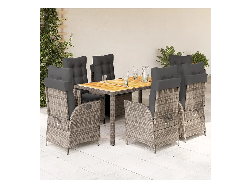 Ensemble à manger de jardin et coussins 7 pcs gris rotin