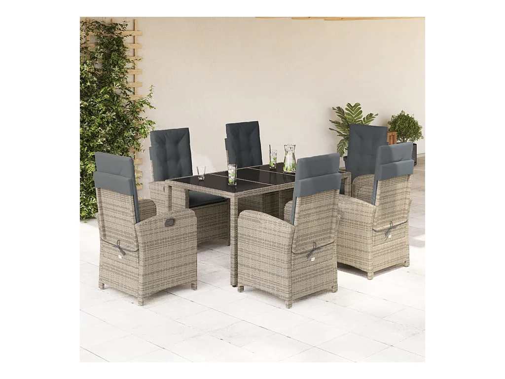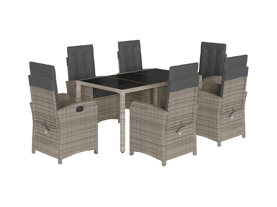 Ensemble à manger de jardin et coussins 7 pcs gris rotin