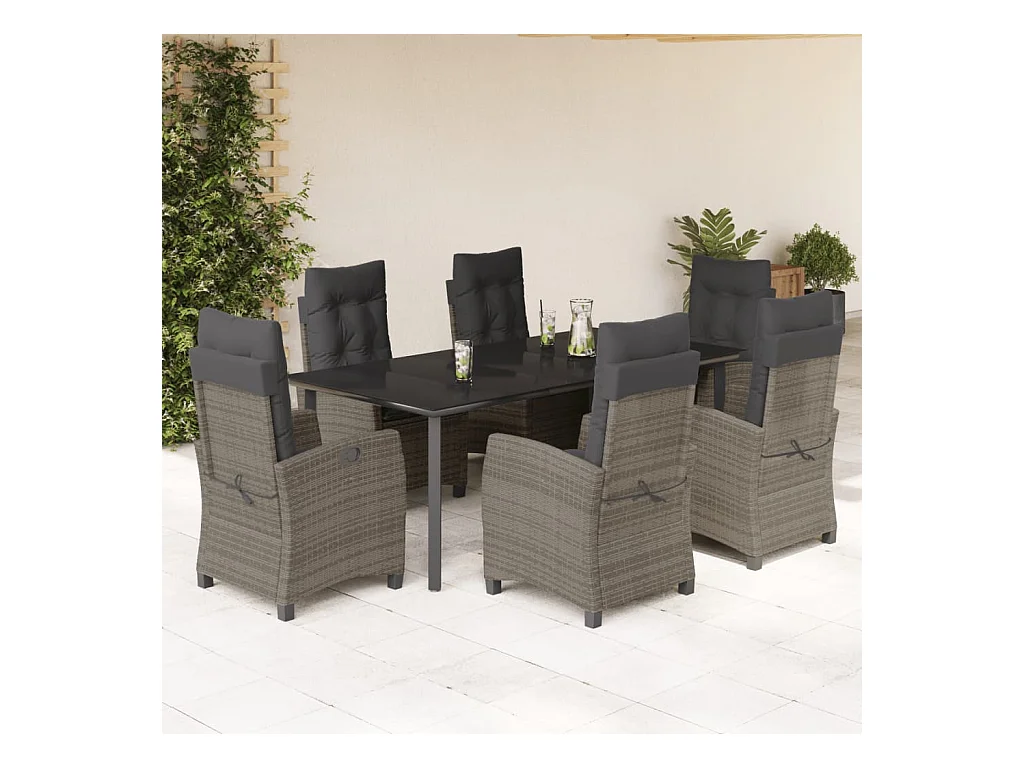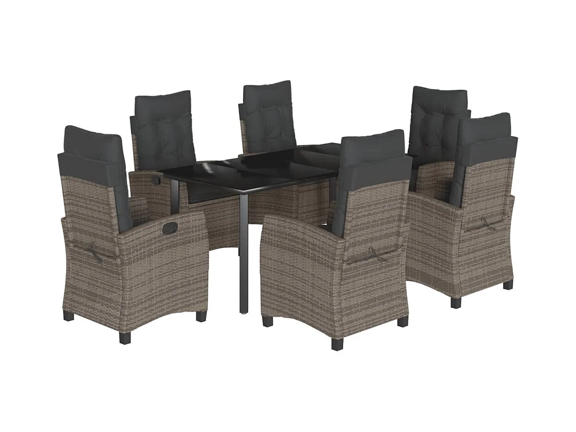 Ensemble à manger de jardin et coussins 7 pcs gris rotin
