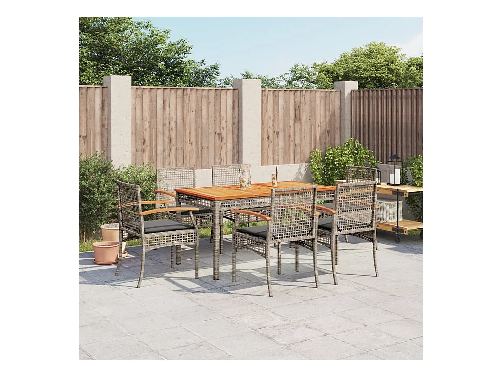 Ensemble à manger de jardin et coussins 7 pcs gris rotin