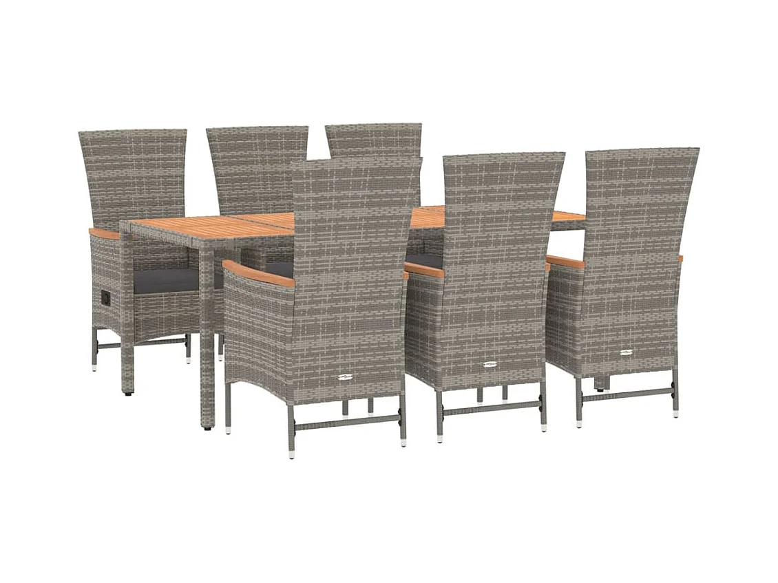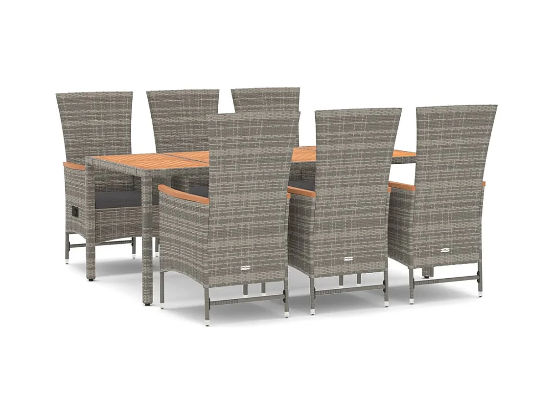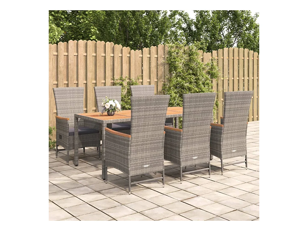 Ensemble à manger de jardin et coussins 7 pcs gris rotin