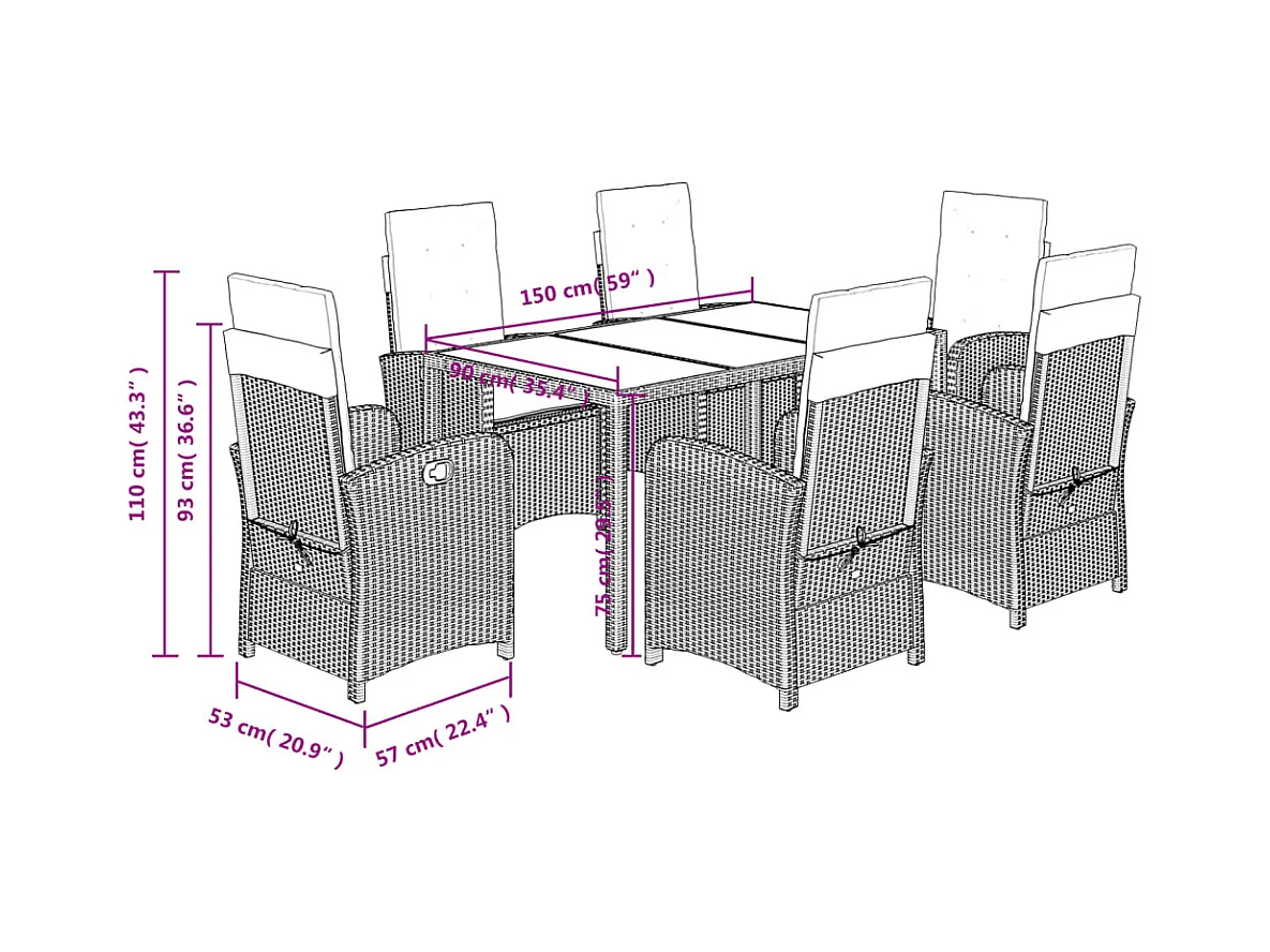 Ensemble à manger de jardin et coussins 7 pcs gris rotin