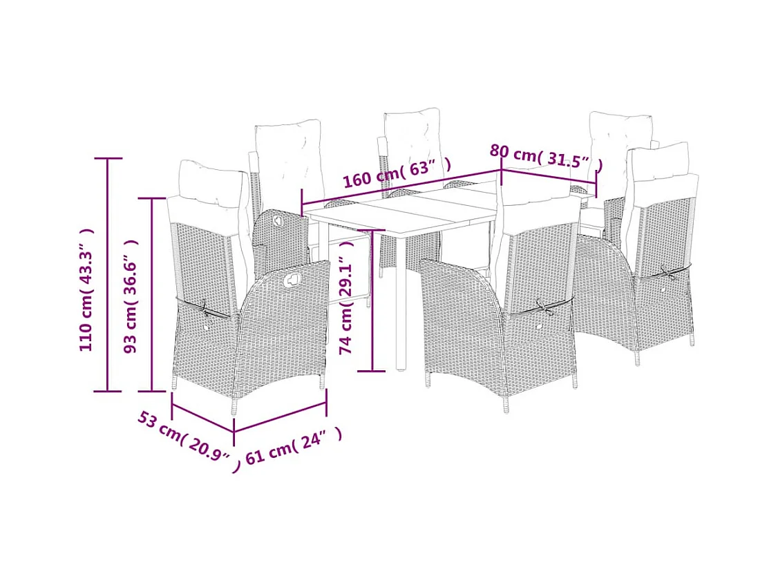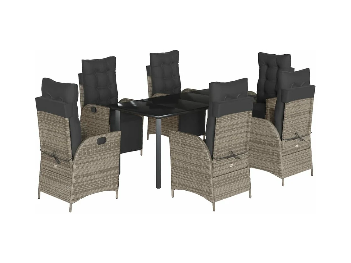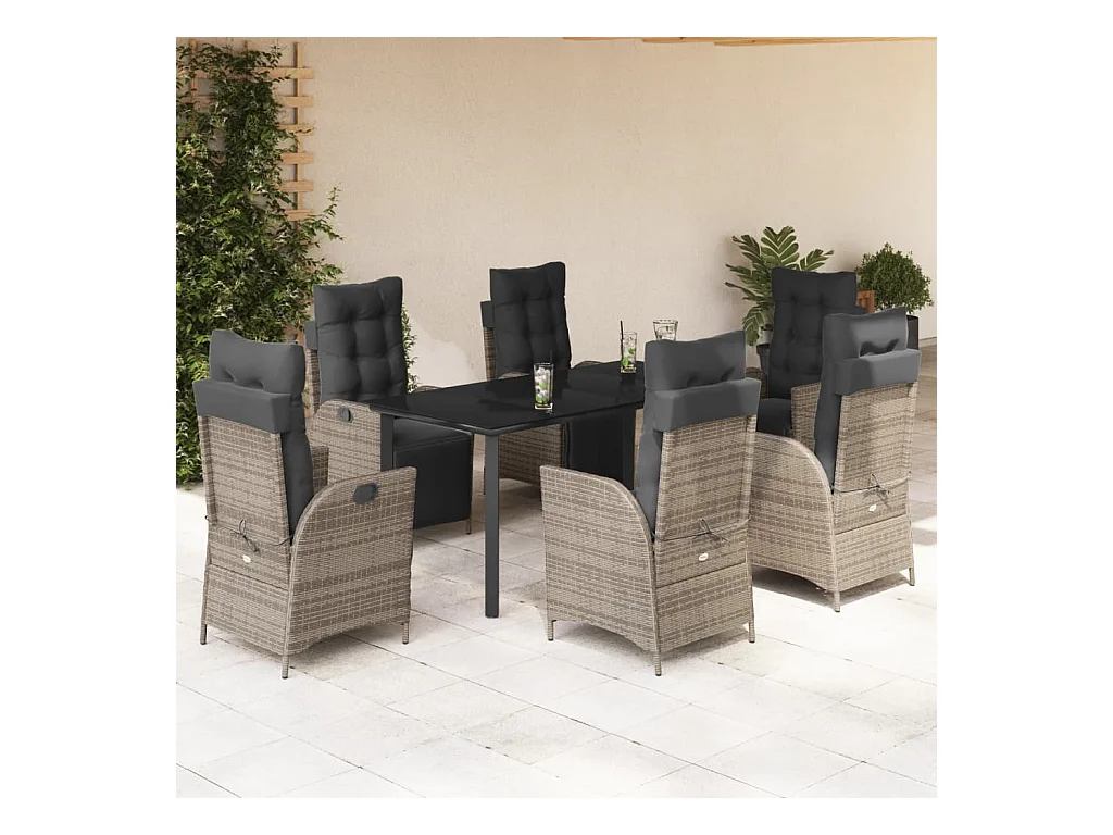 Ensemble à manger de jardin et coussins 7 pcs gris rotin