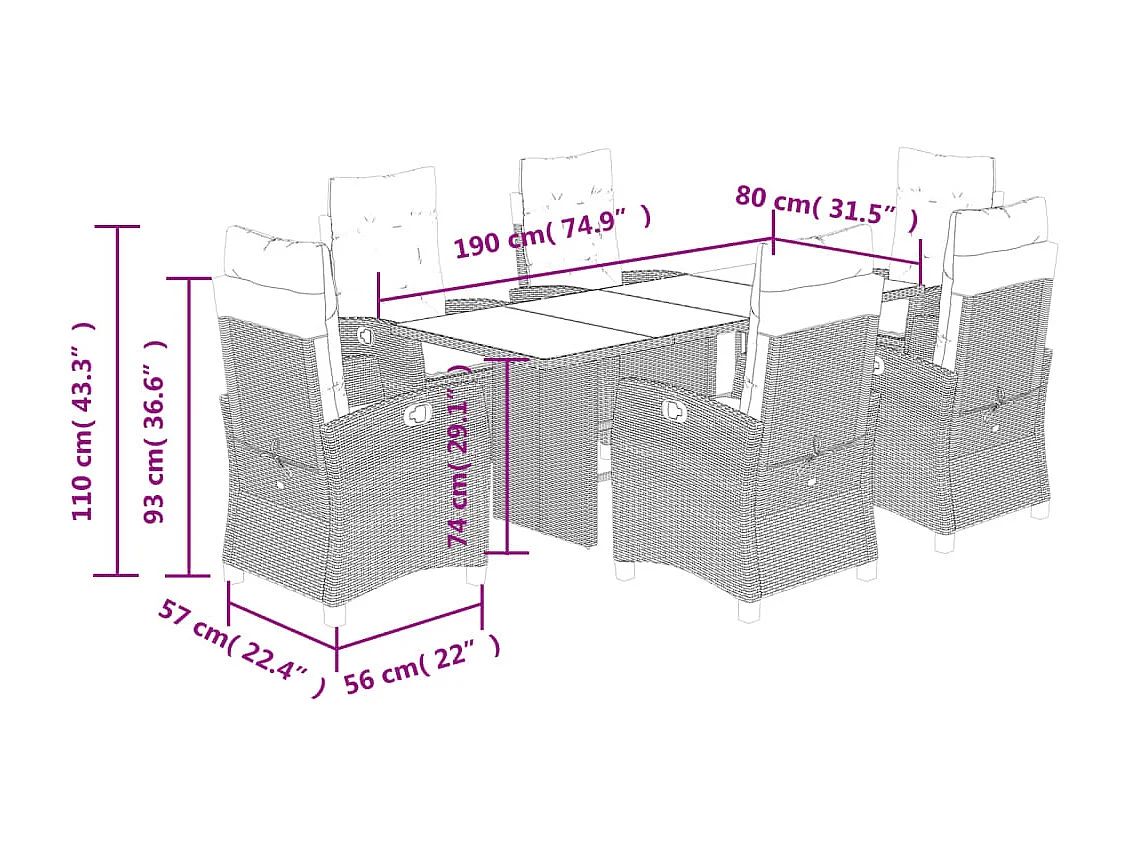 Ensemble à manger de jardin et coussins 7 pcs marron rotin