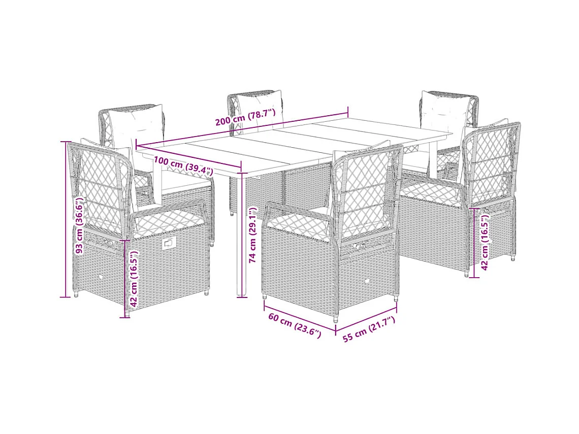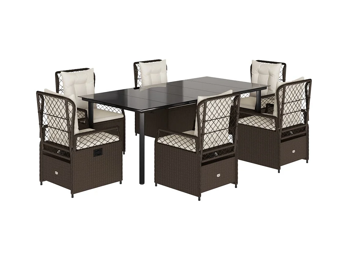 Ensemble à manger de jardin et coussins 7 pcs marron rotin