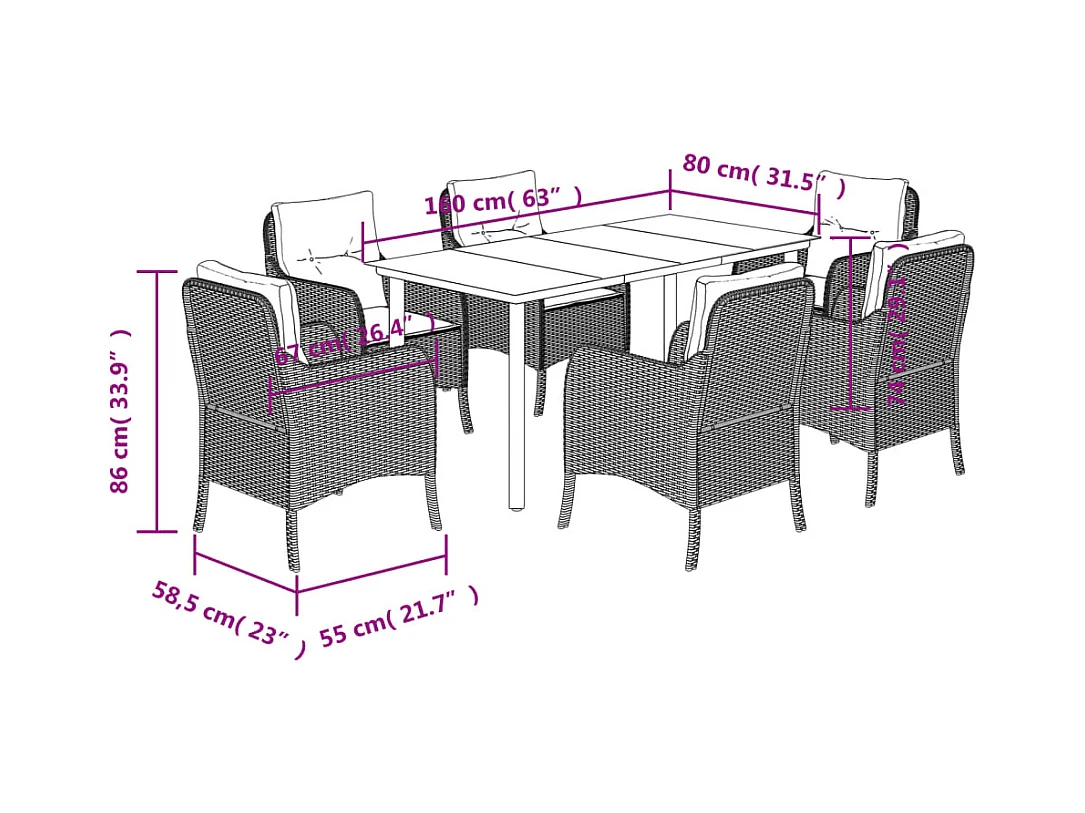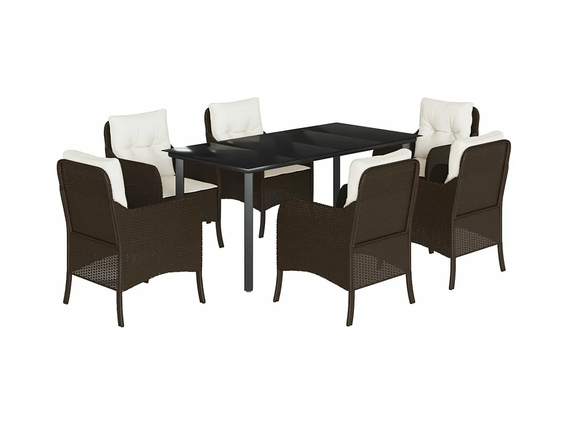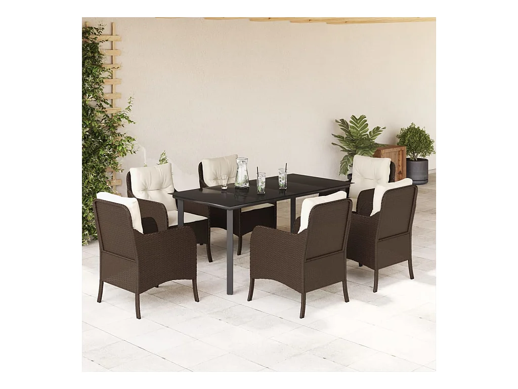 Ensemble à manger de jardin et coussins 7 pcs marron rotin