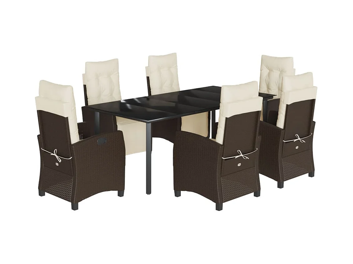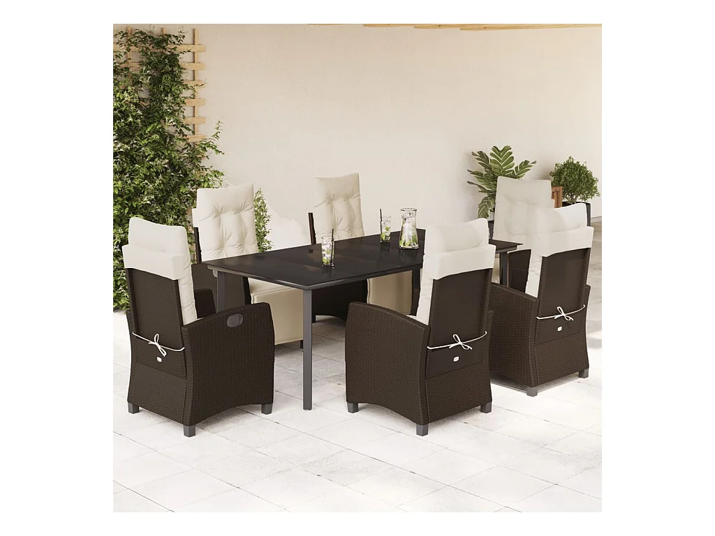 Ensemble à manger de jardin et coussins 7 pcs marron rotin