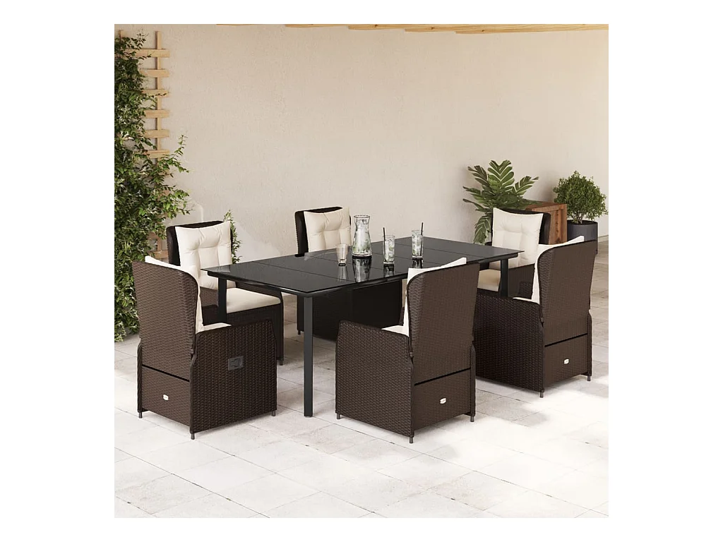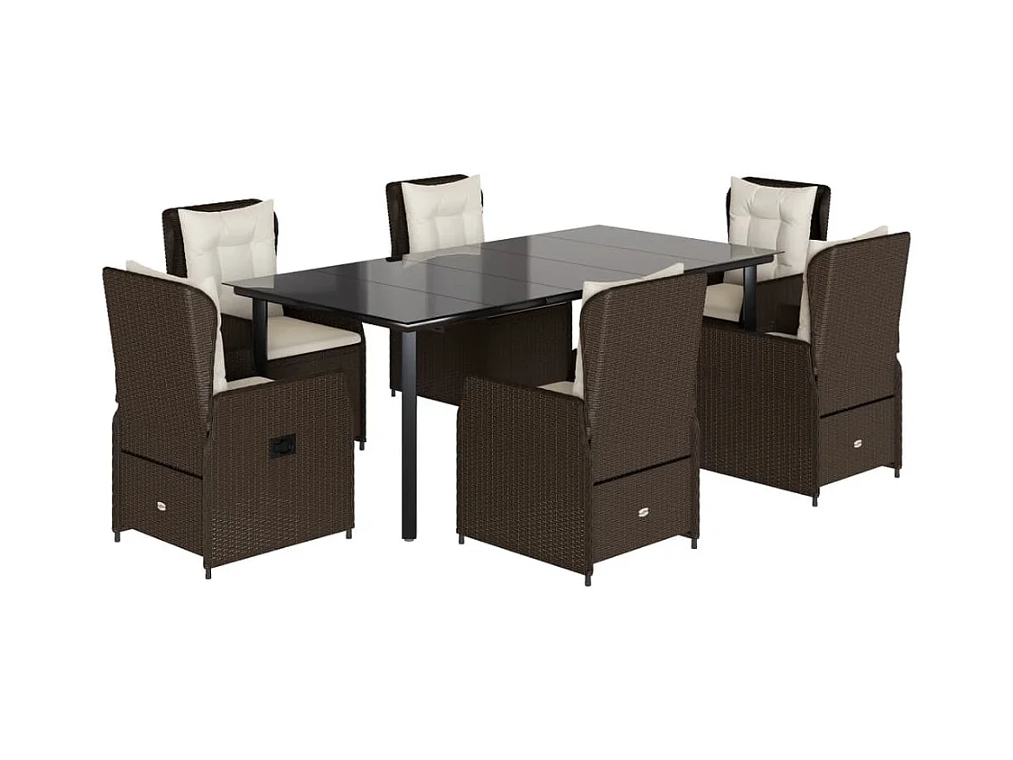 Ensemble à manger de jardin et coussins 7 pcs marron rotin