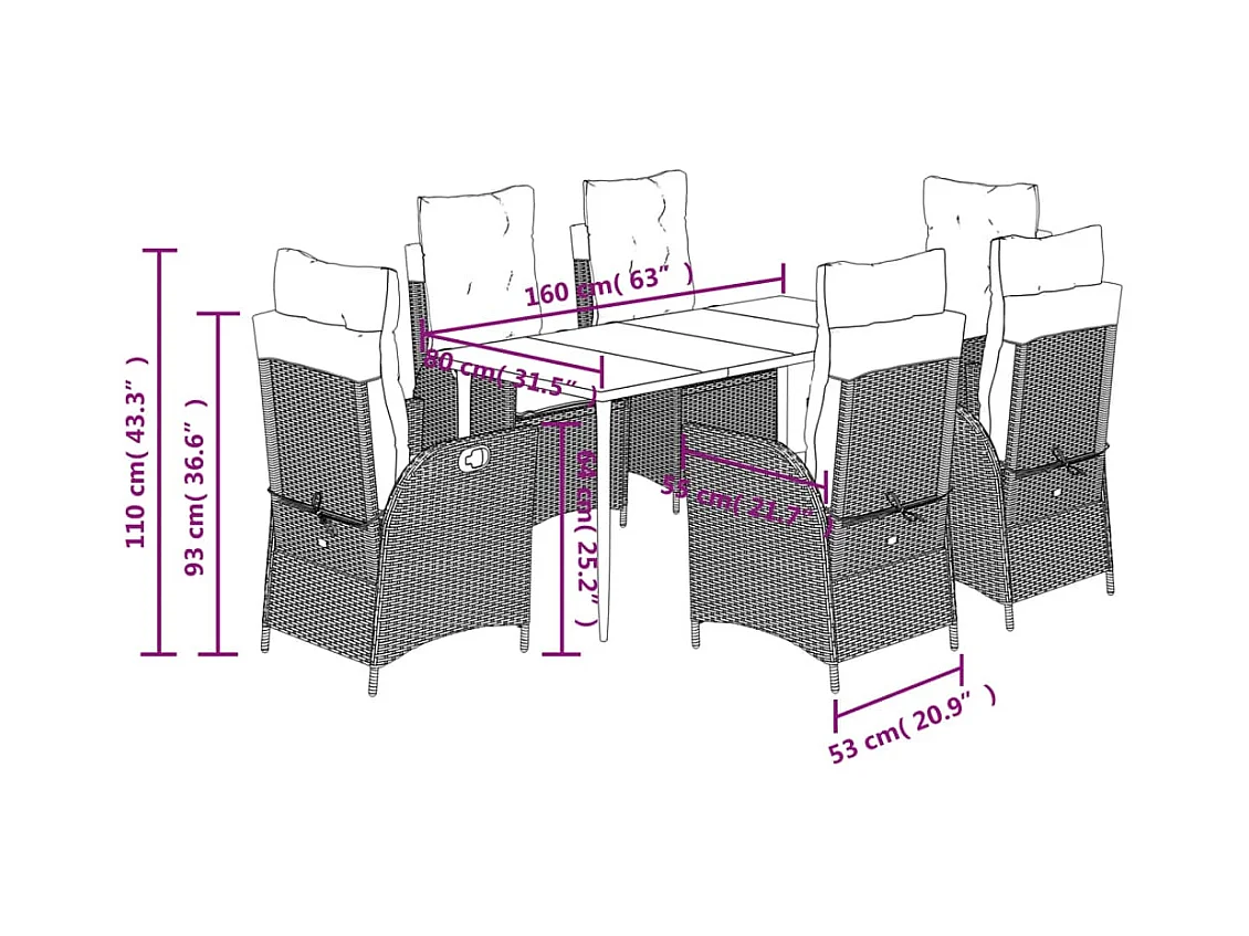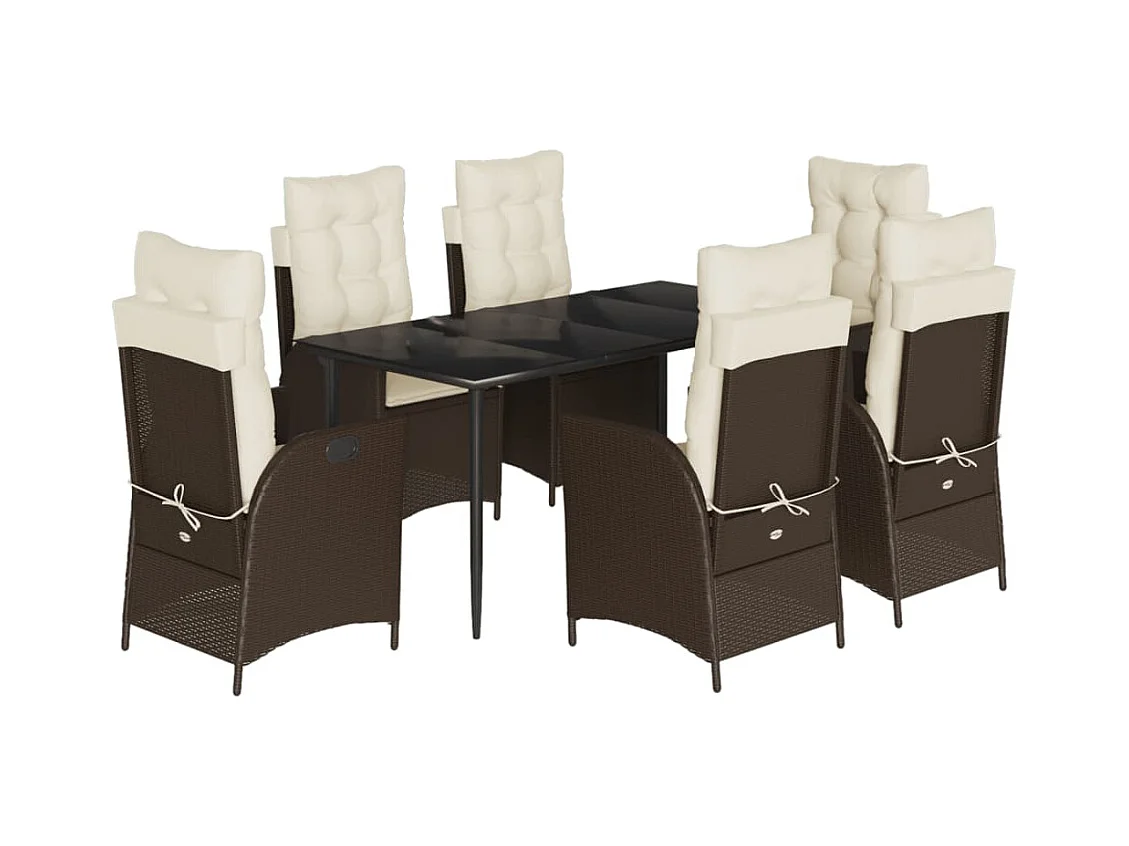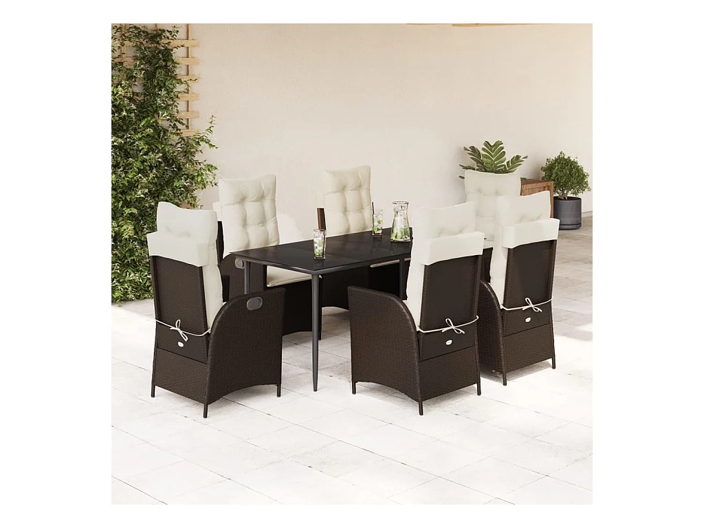Ensemble à manger de jardin et coussins 7 pcs marron rotin
