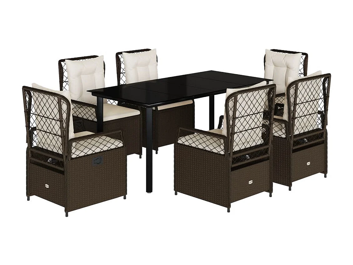Ensemble à manger de jardin et coussins 7 pcs marron rotin