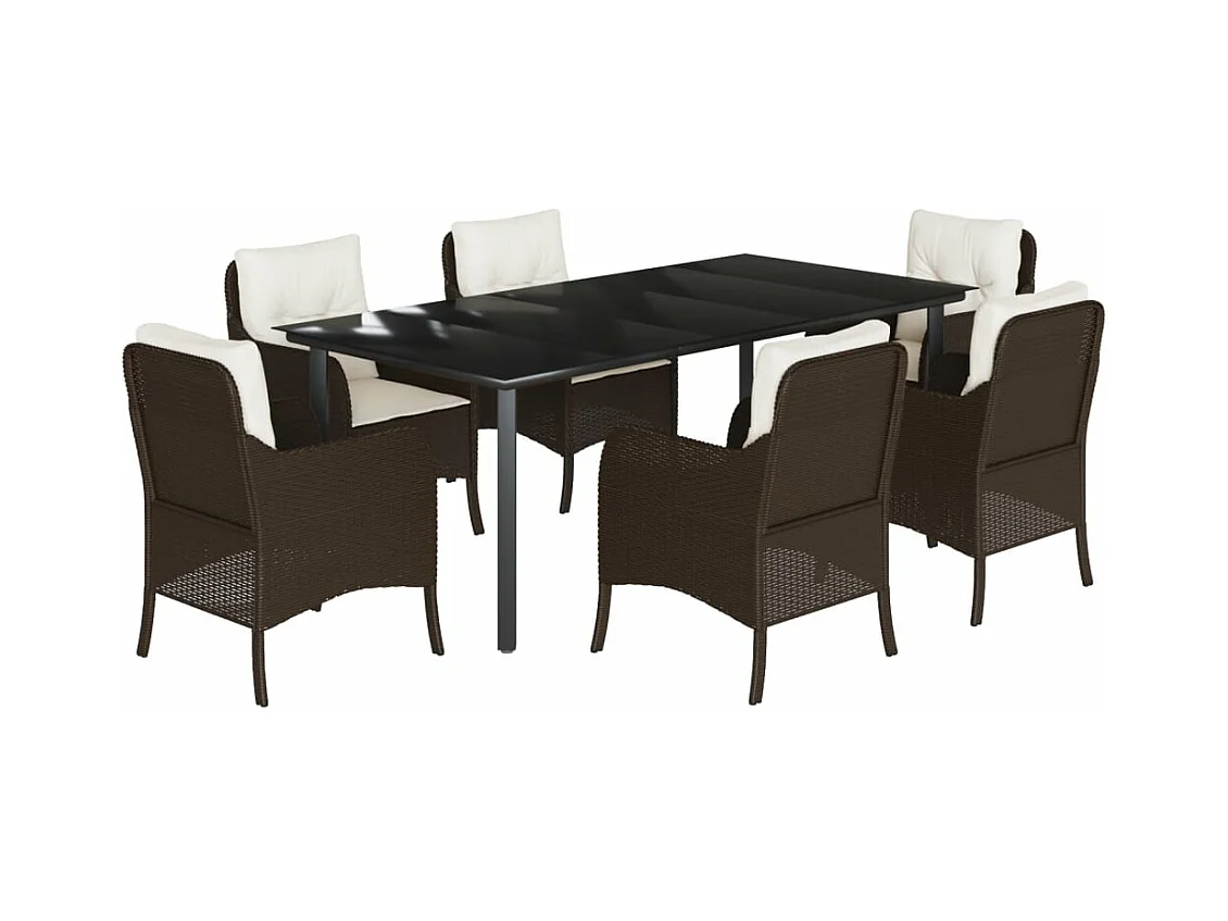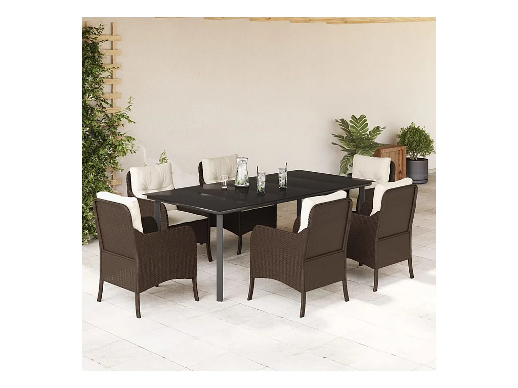Ensemble à manger de jardin et coussins 7 pcs marron rotin