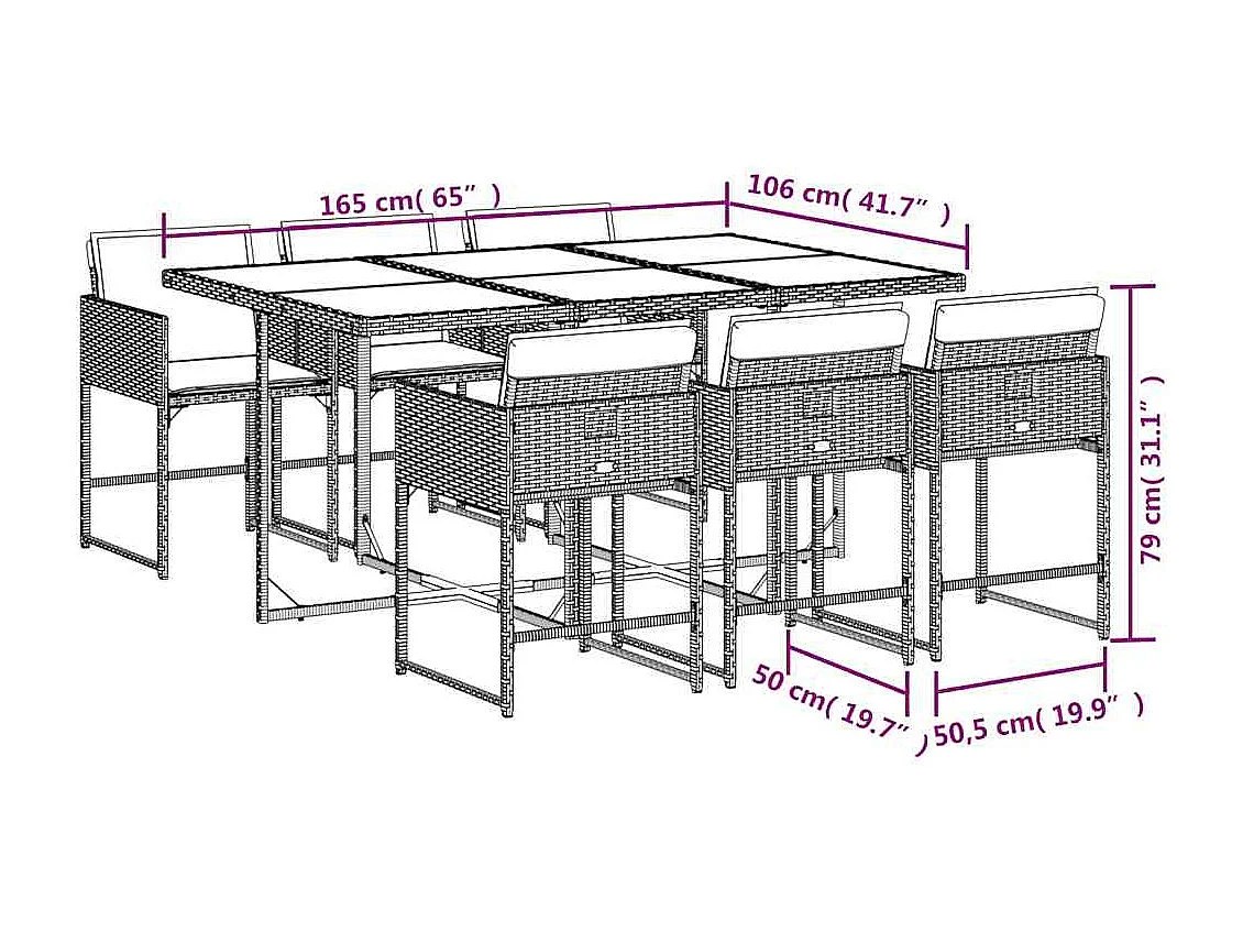 Ensemble à manger de jardin et coussins 7 pièces beige poly rotin
