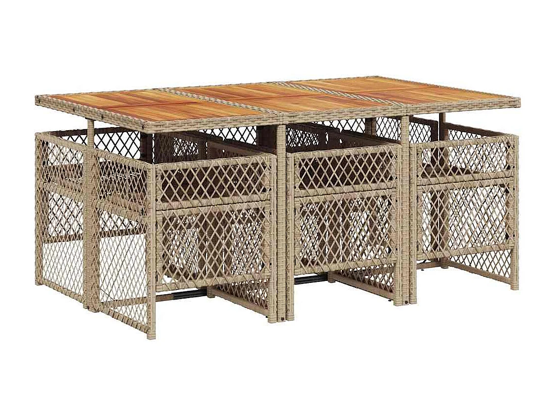 Ensemble à manger de jardin et coussins 7 pièces beige poly rotin