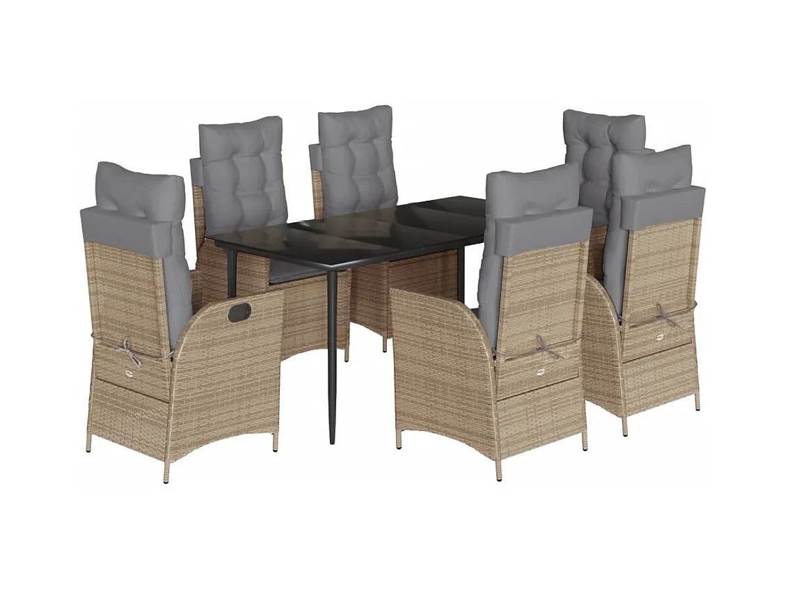 Ensemble à manger de jardin et coussins 7 pièces beige poly rotin