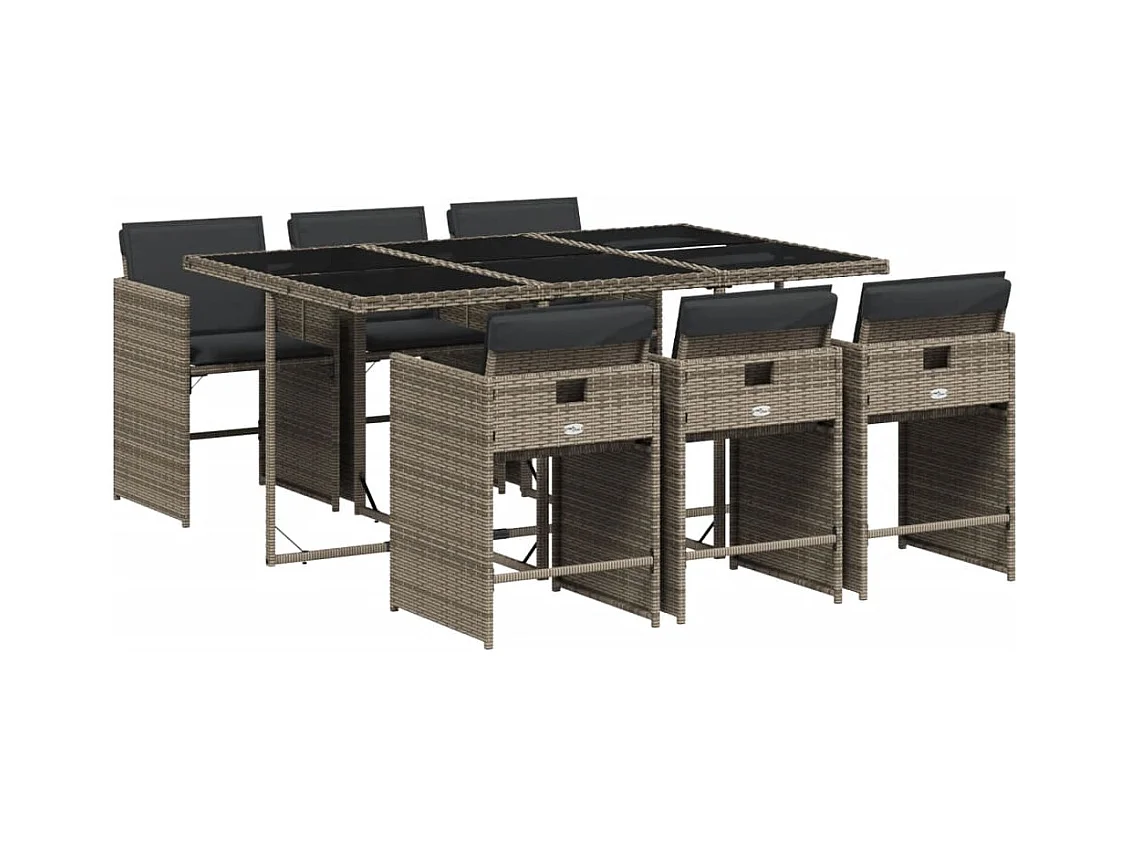 Ensemble à manger de jardin et coussins 7 pièces gris rotin