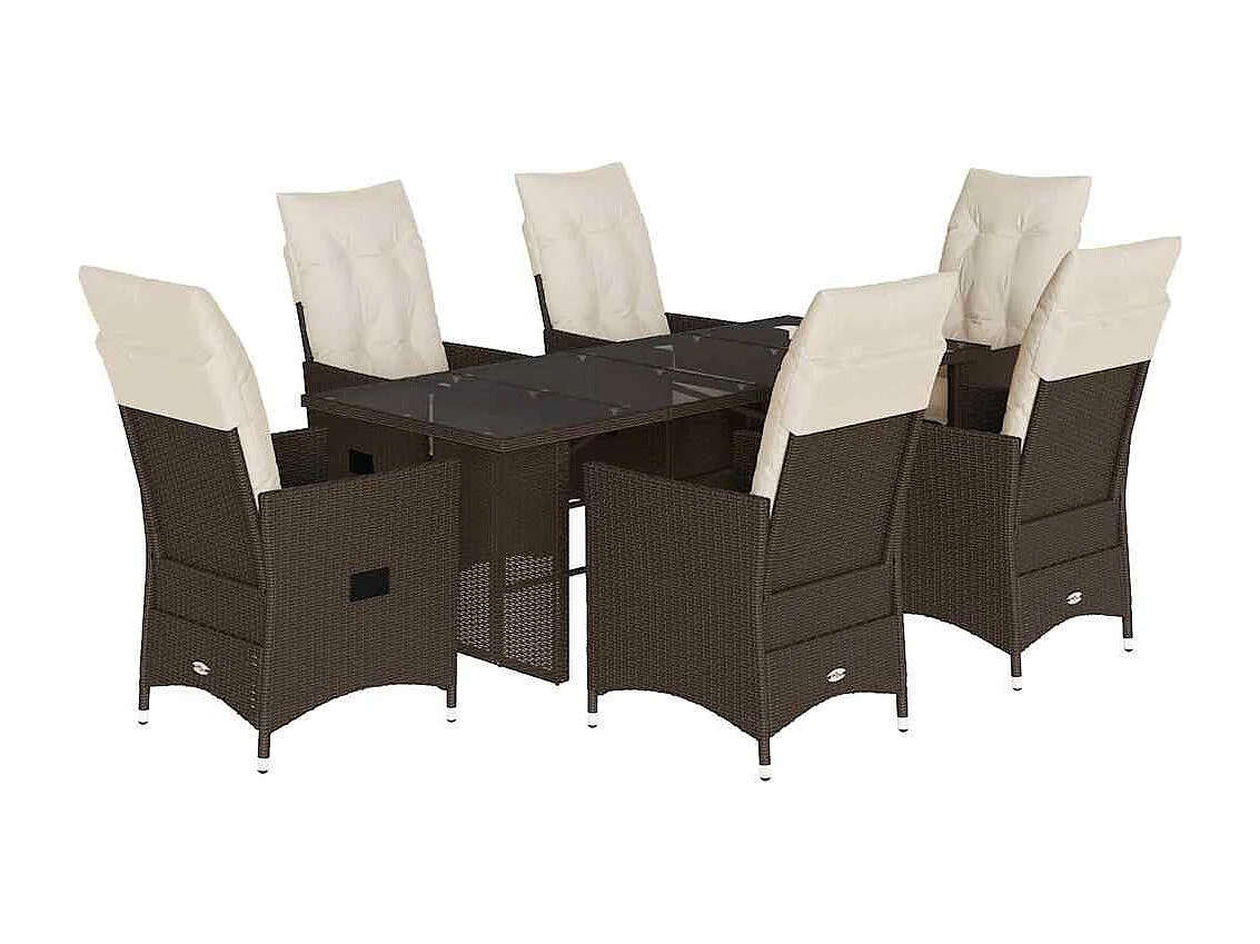Ensemble à manger de jardin et coussins 7 pièces marron rotin
