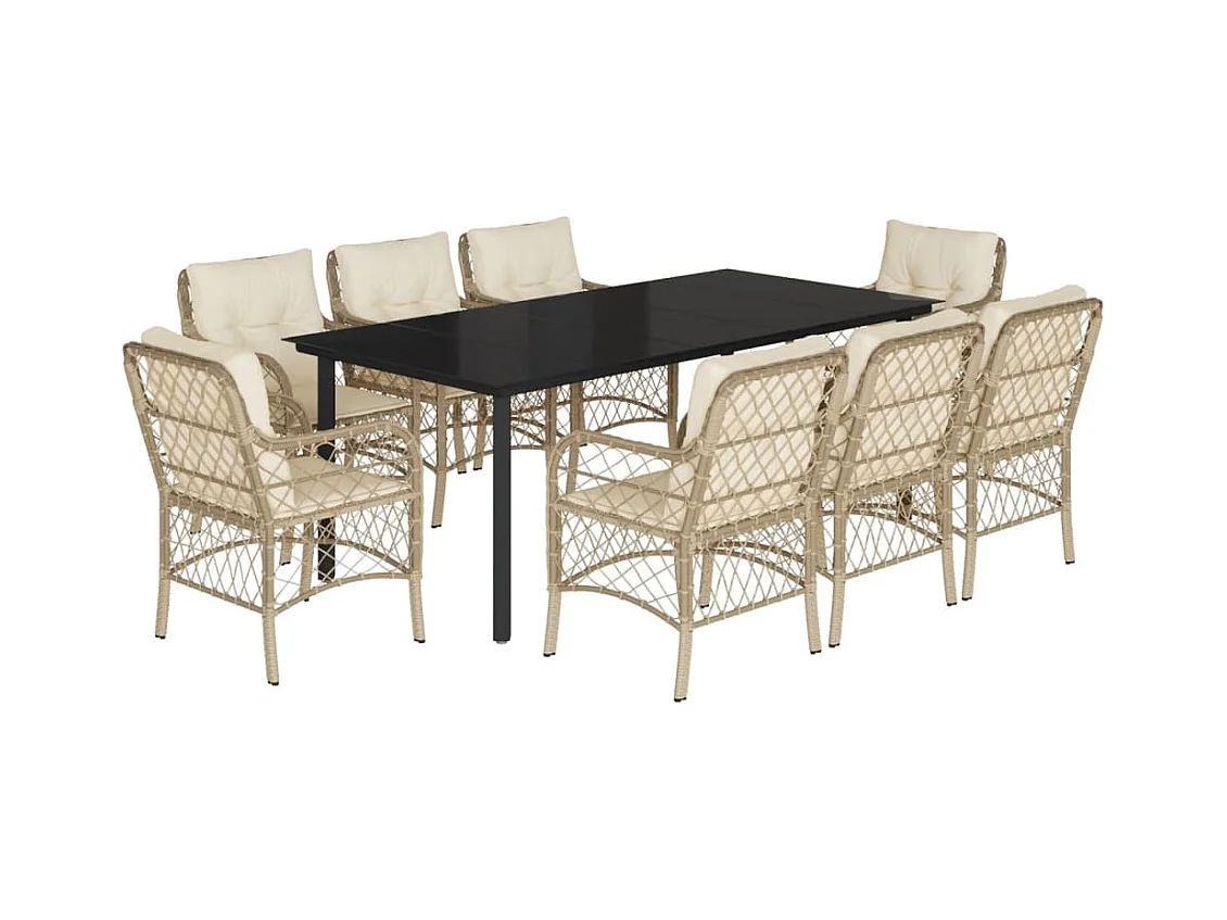 Ensemble à manger de jardin et coussins 9 pcs beige Poly rotin